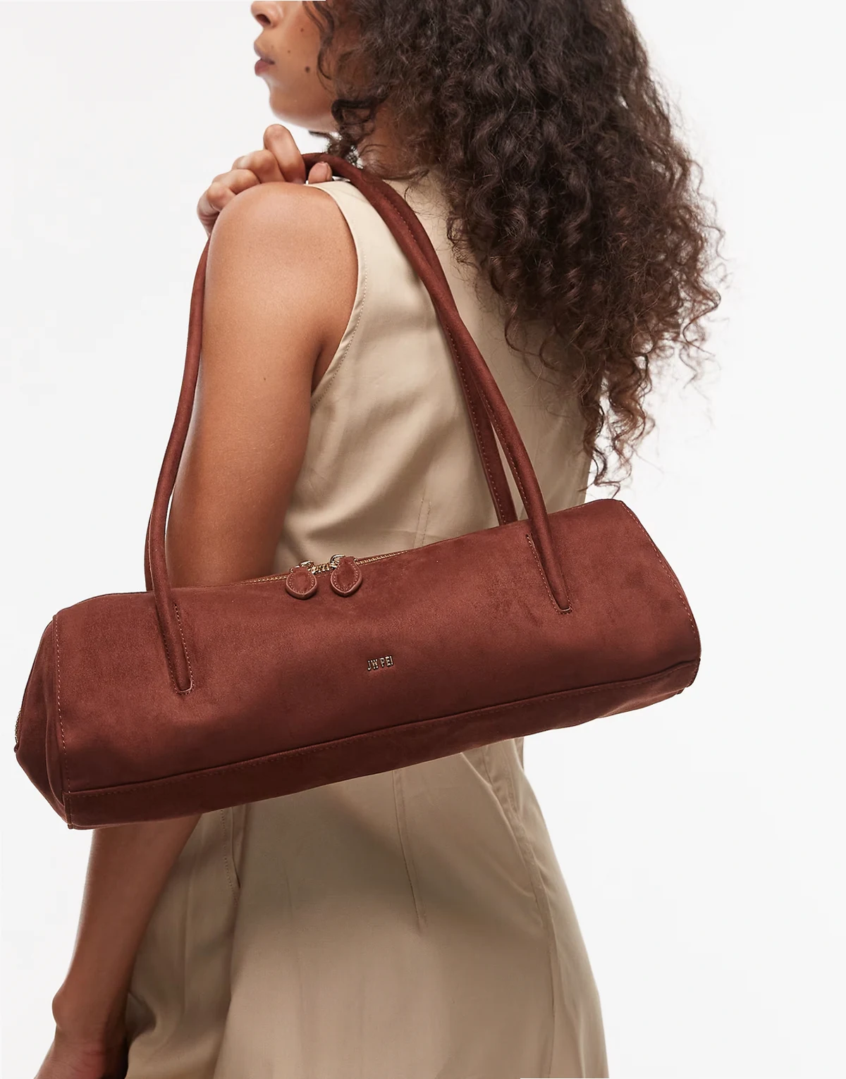 Nova faux suede shoulder bag in brown