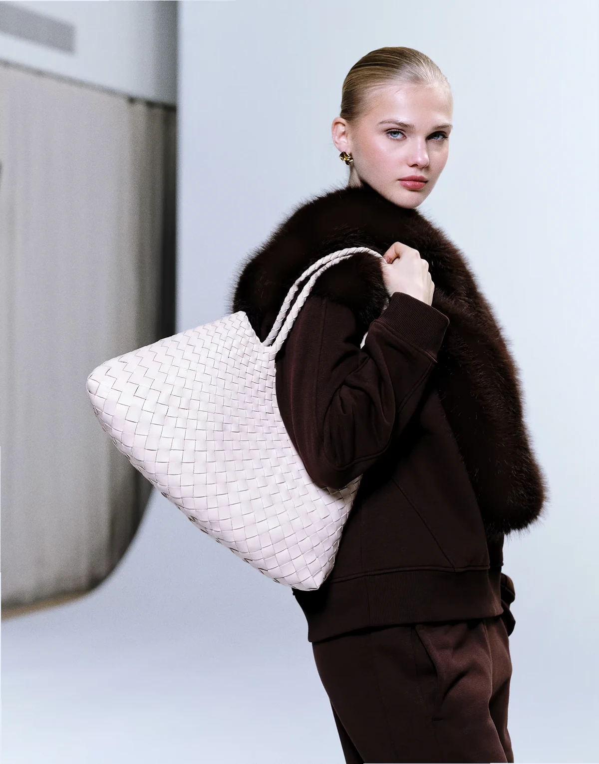 Santa Croce big woven leather bag in natural