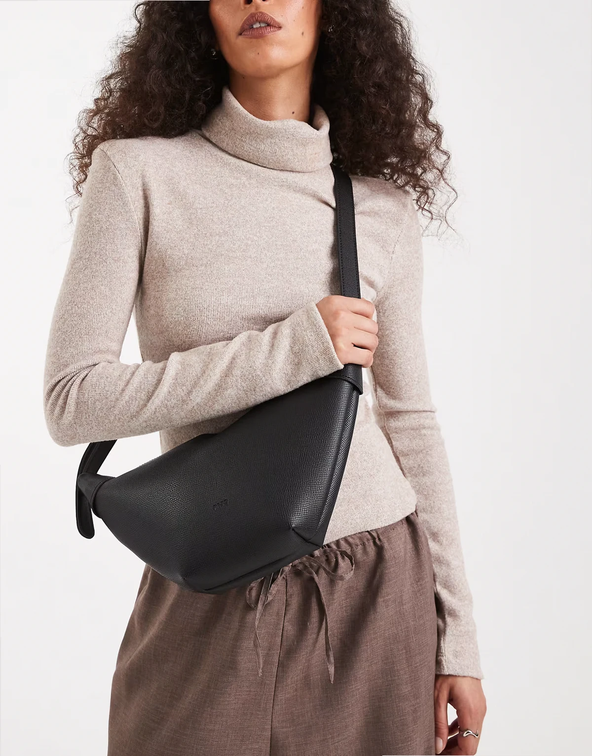 textured croissant crossbody bag in black
