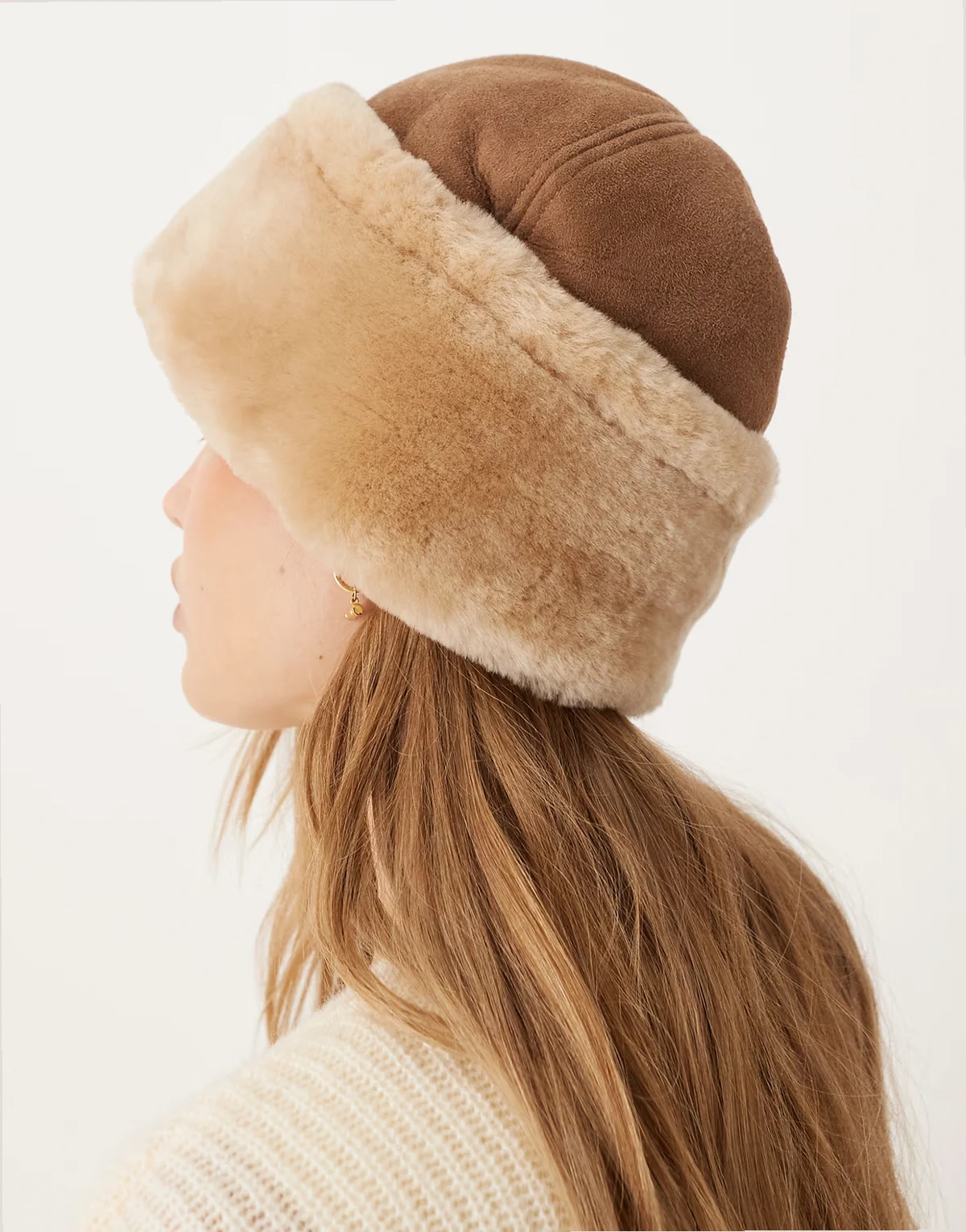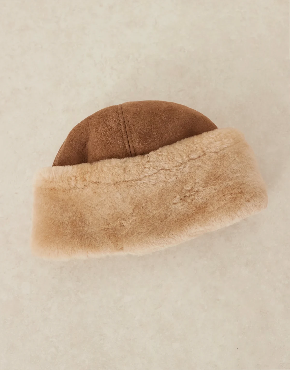 dora shearling hat in tan