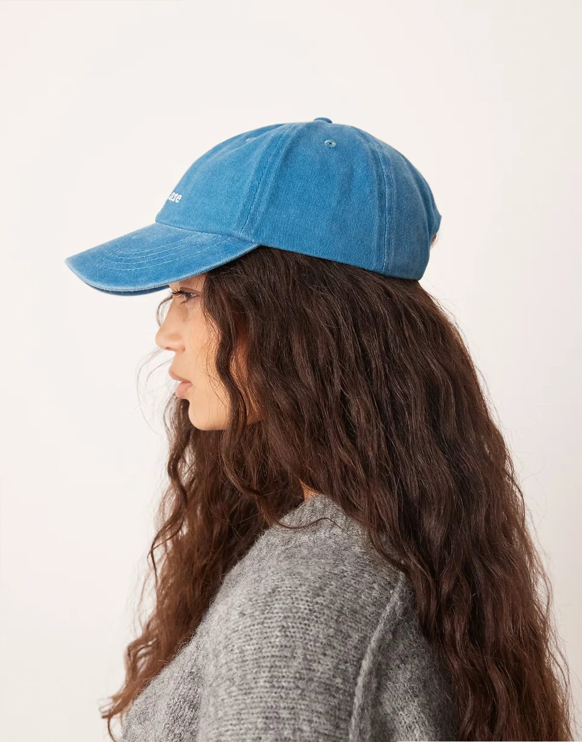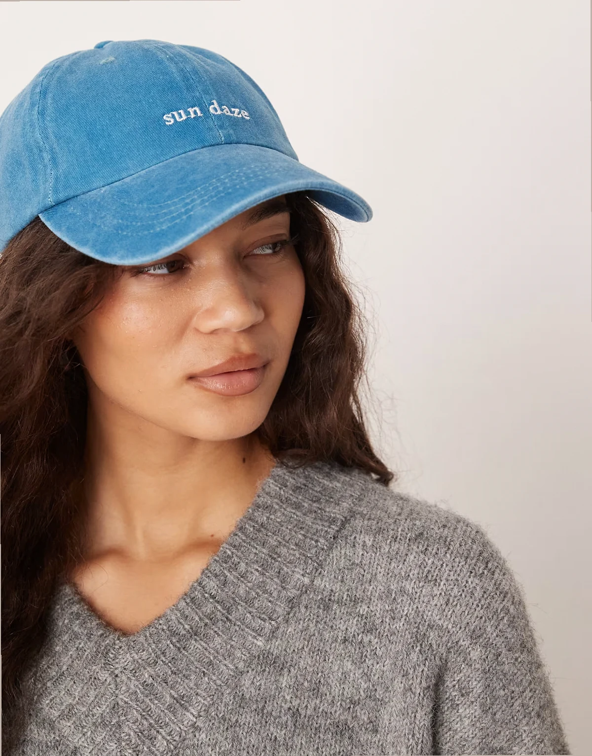 embroidered sun daze slogan cap in wash blue