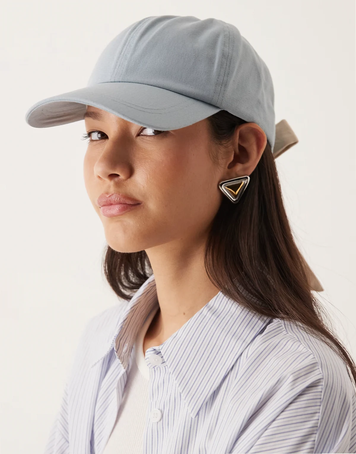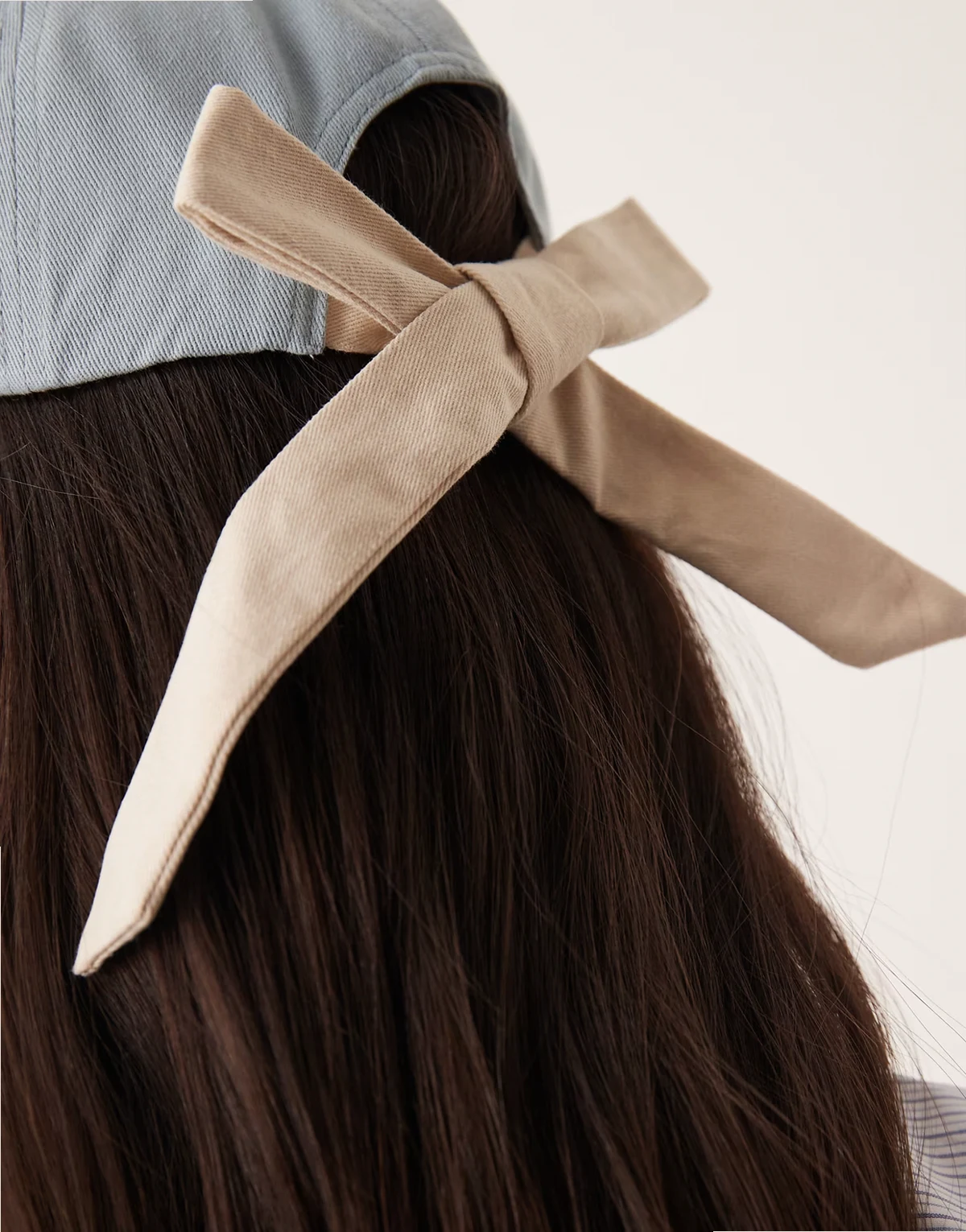 tie up back detail cap in washed blue