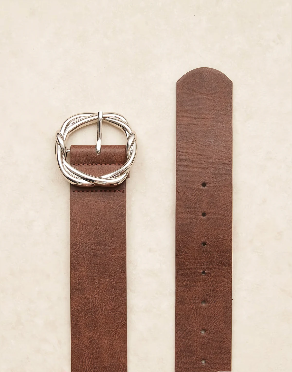 wide belt twisted buckle in brown