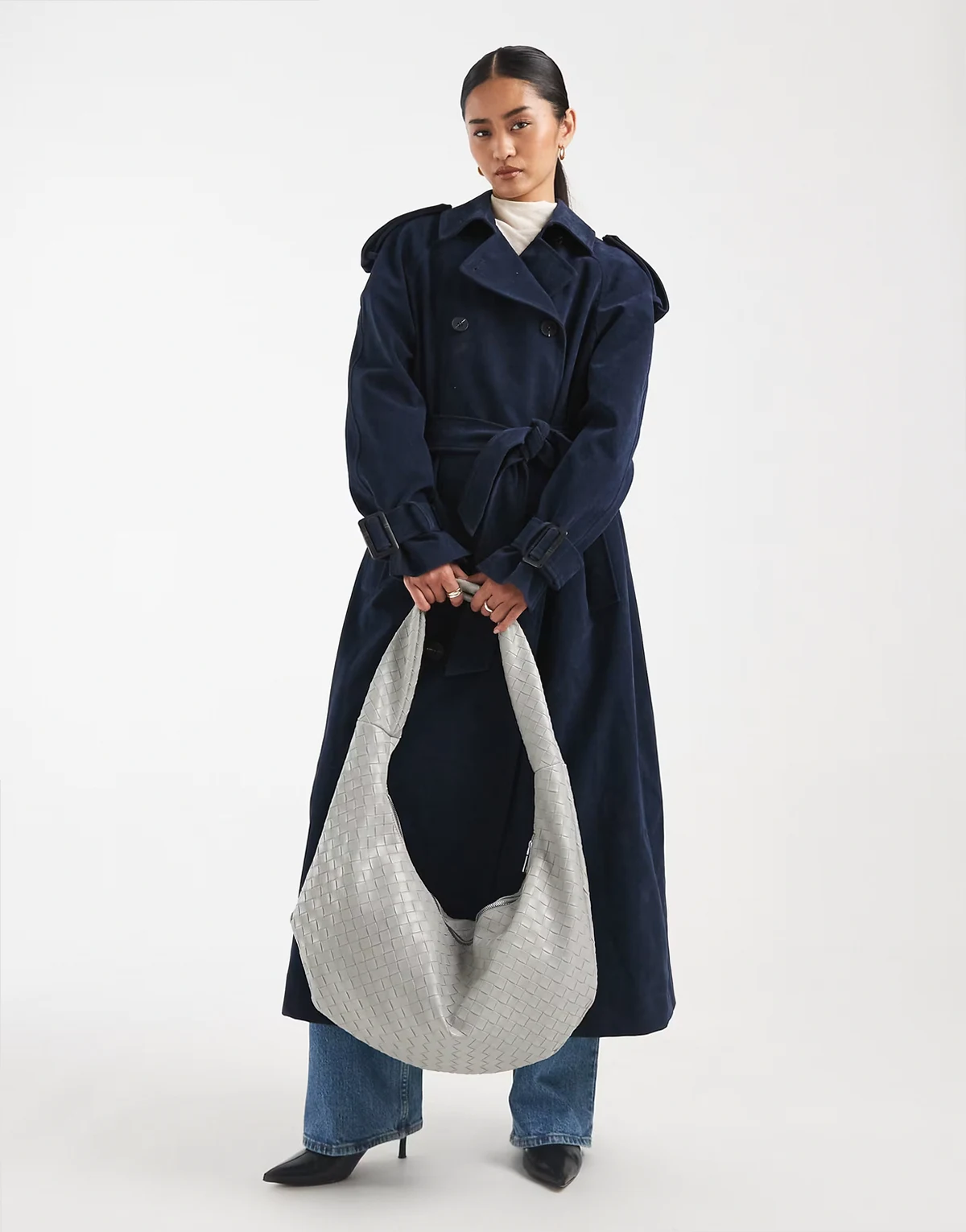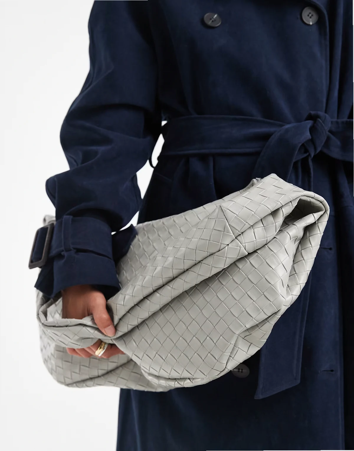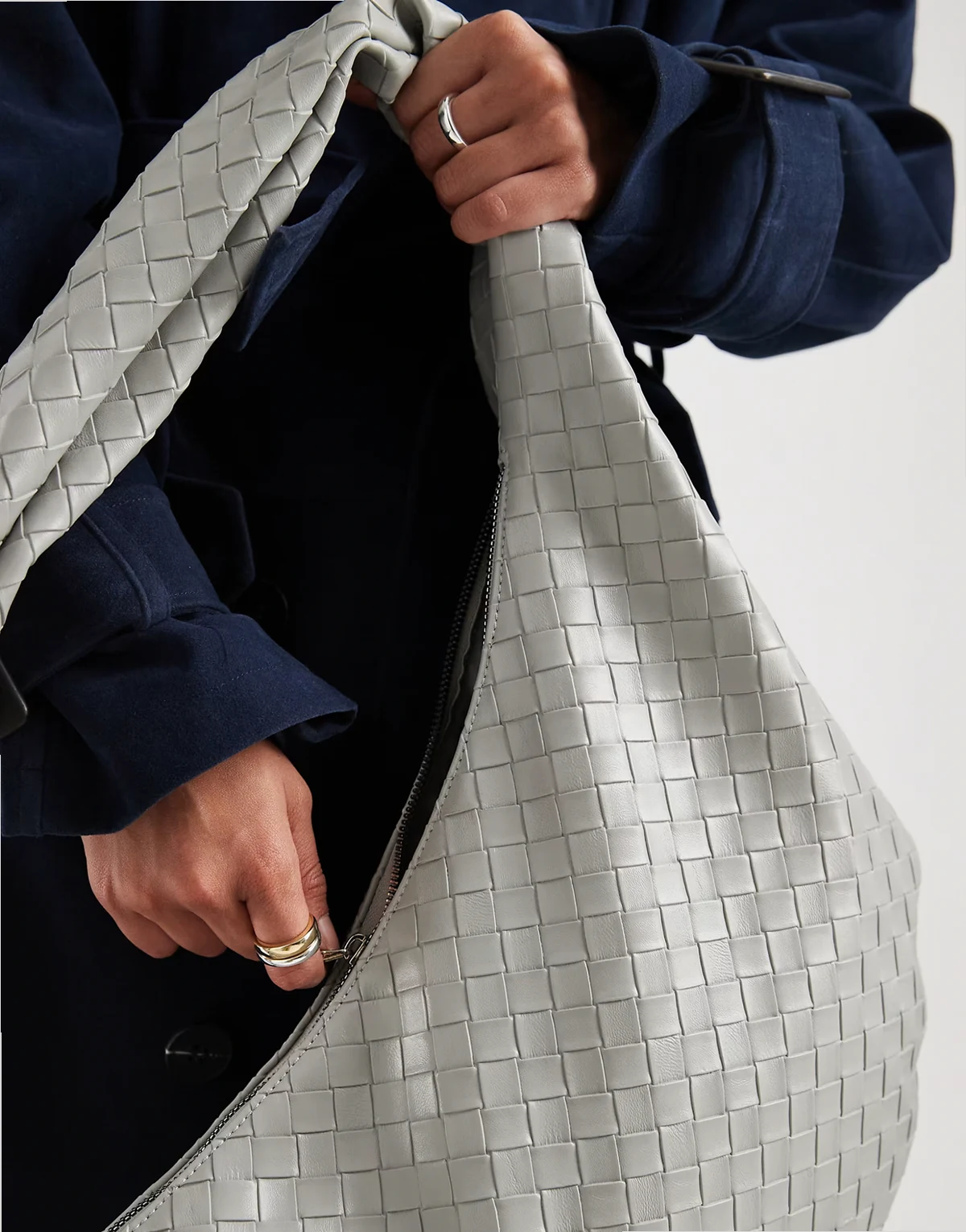 woven slouchy shoulder bag in gray
