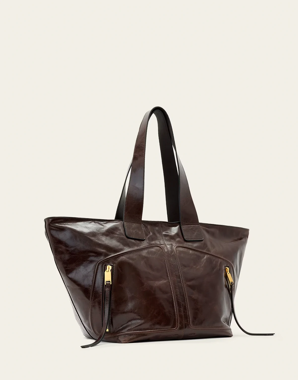 jean rey zip detailing tote in cognac brown