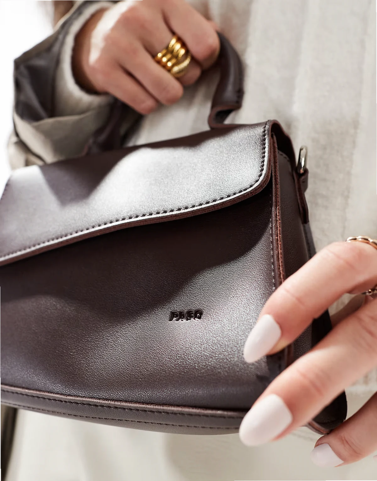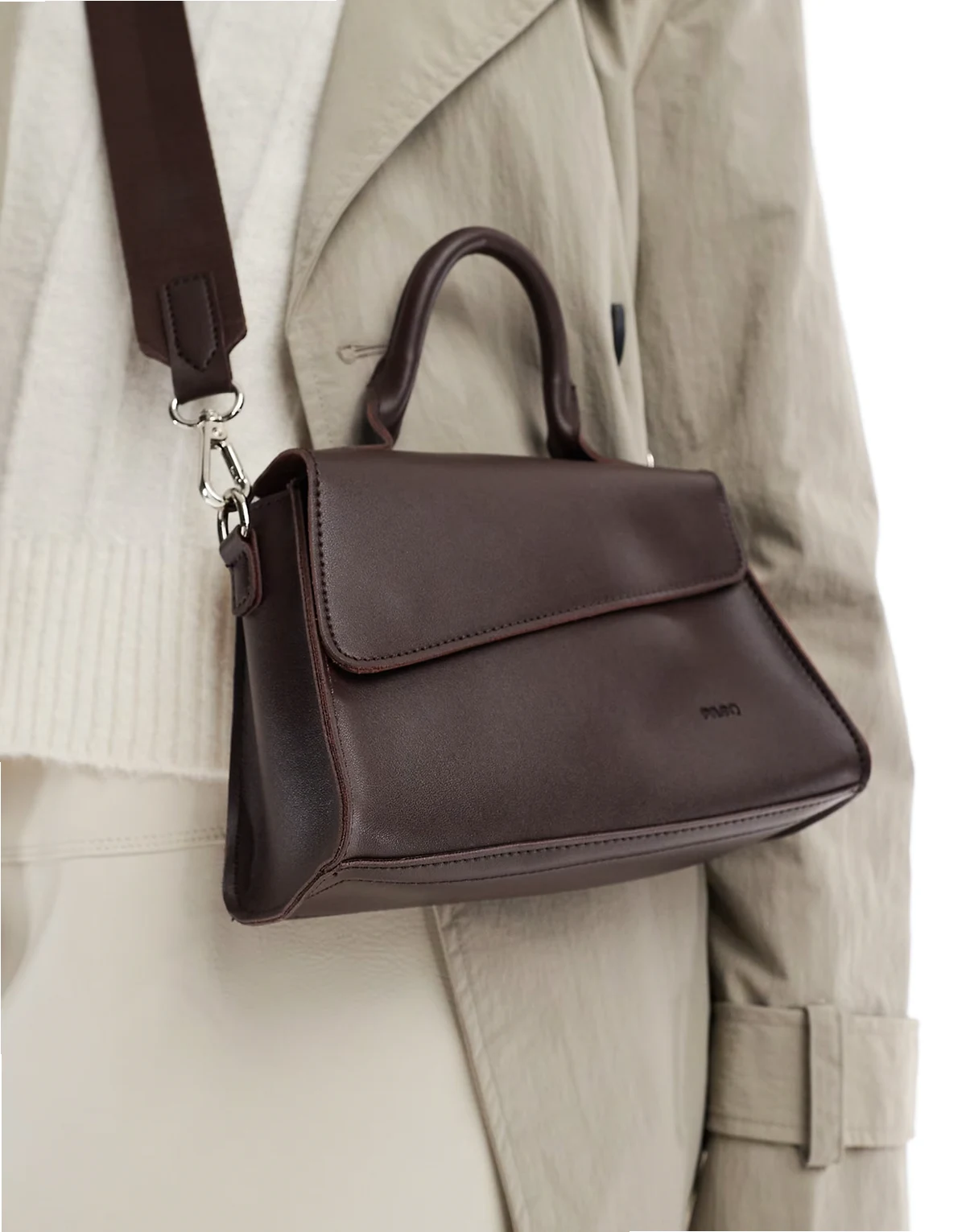 diagonal flap grab bag with crossbody strap in chocolate brown
