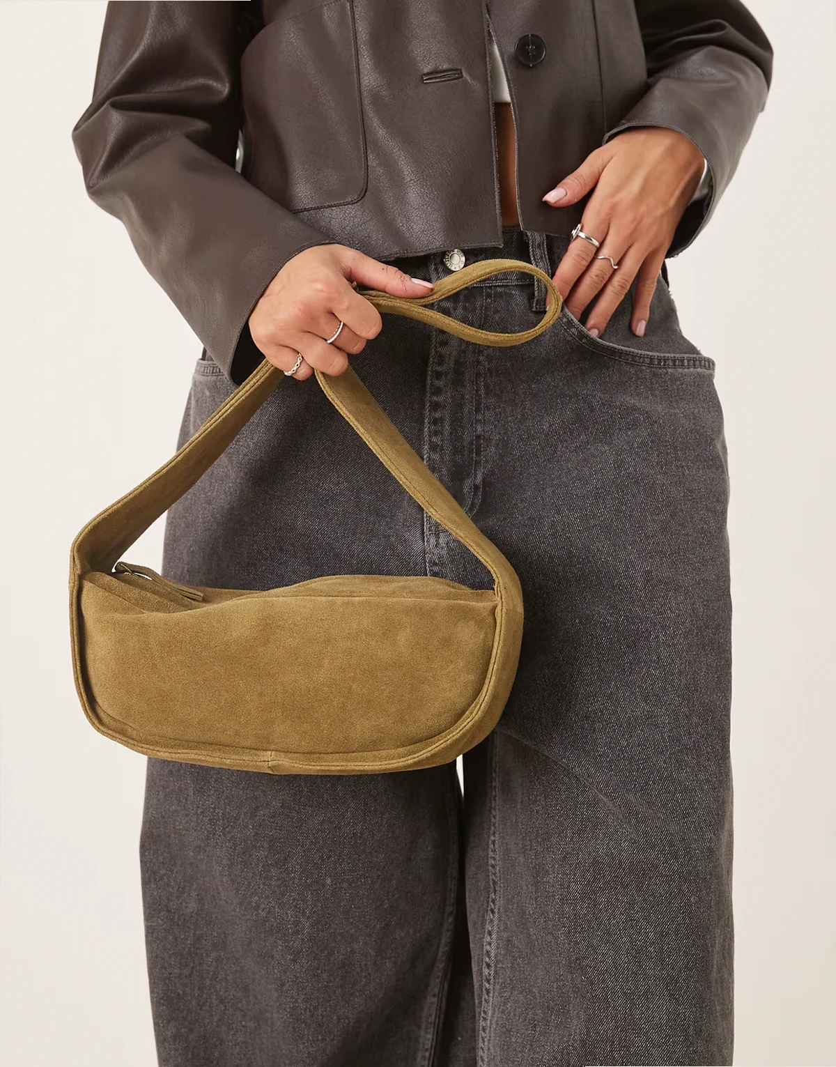 suede adjustable sling crossbody bag in olive
