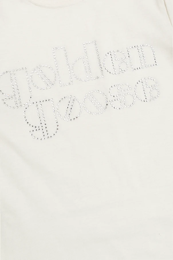 The defining feature—a shimmering “golden goose” logo—graces the front, meticulously designed with tiny, light-catching crystals that create a striking 3D effect, epitomizing refined playfulness and modern elegance. Inside the collar, a discreet label honors its Italian origin and designer legacy.