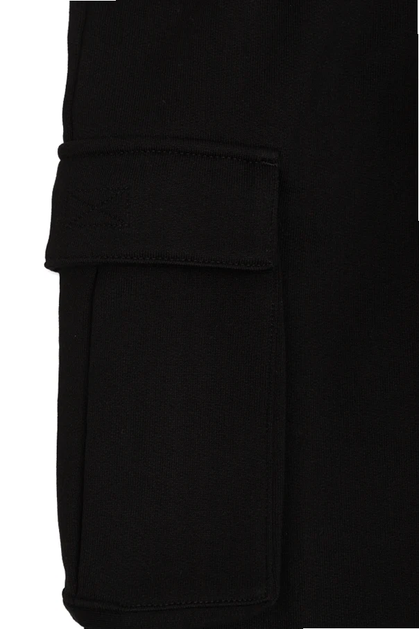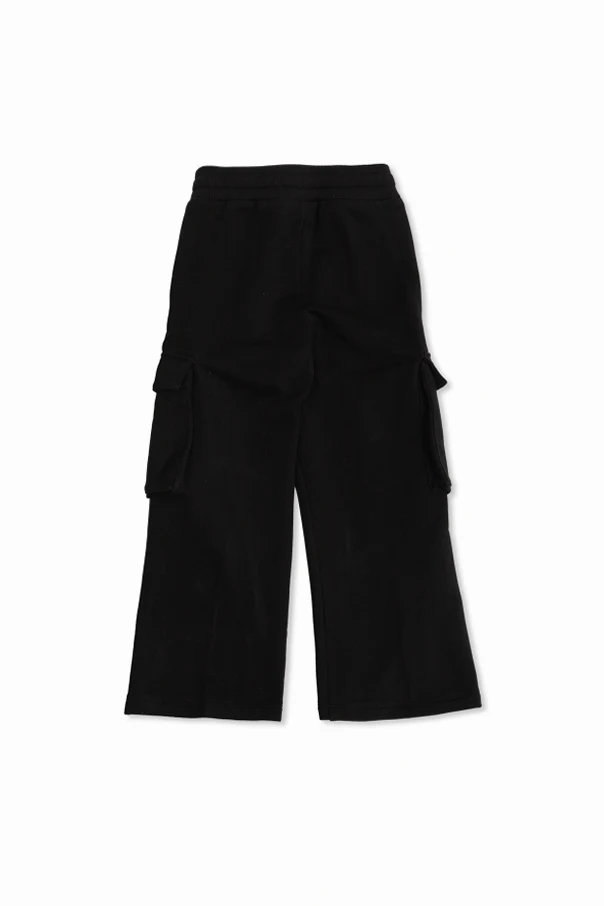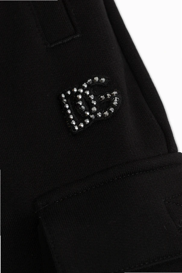 Embrace the understated luxury of these black cargo sweatpants from Dolce & Gabbana Kids. Meticulously tailored with a relaxed, wide-leg silhouette, they exude a refined sense of urban ease while honoring timeless utility. The sumptuously soft cotton-blend knit ensures remarkable comfort, accentuated by an elastic waistband with an adjustable drawstring for a tailored fit.
