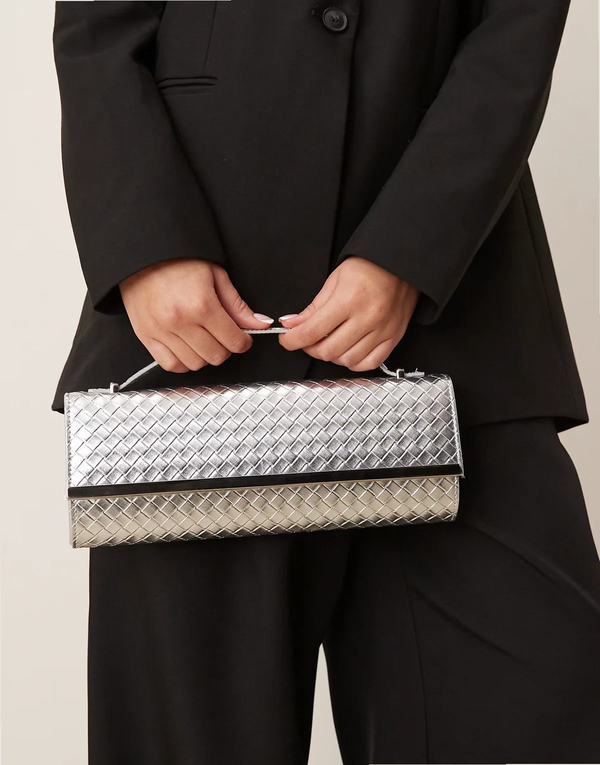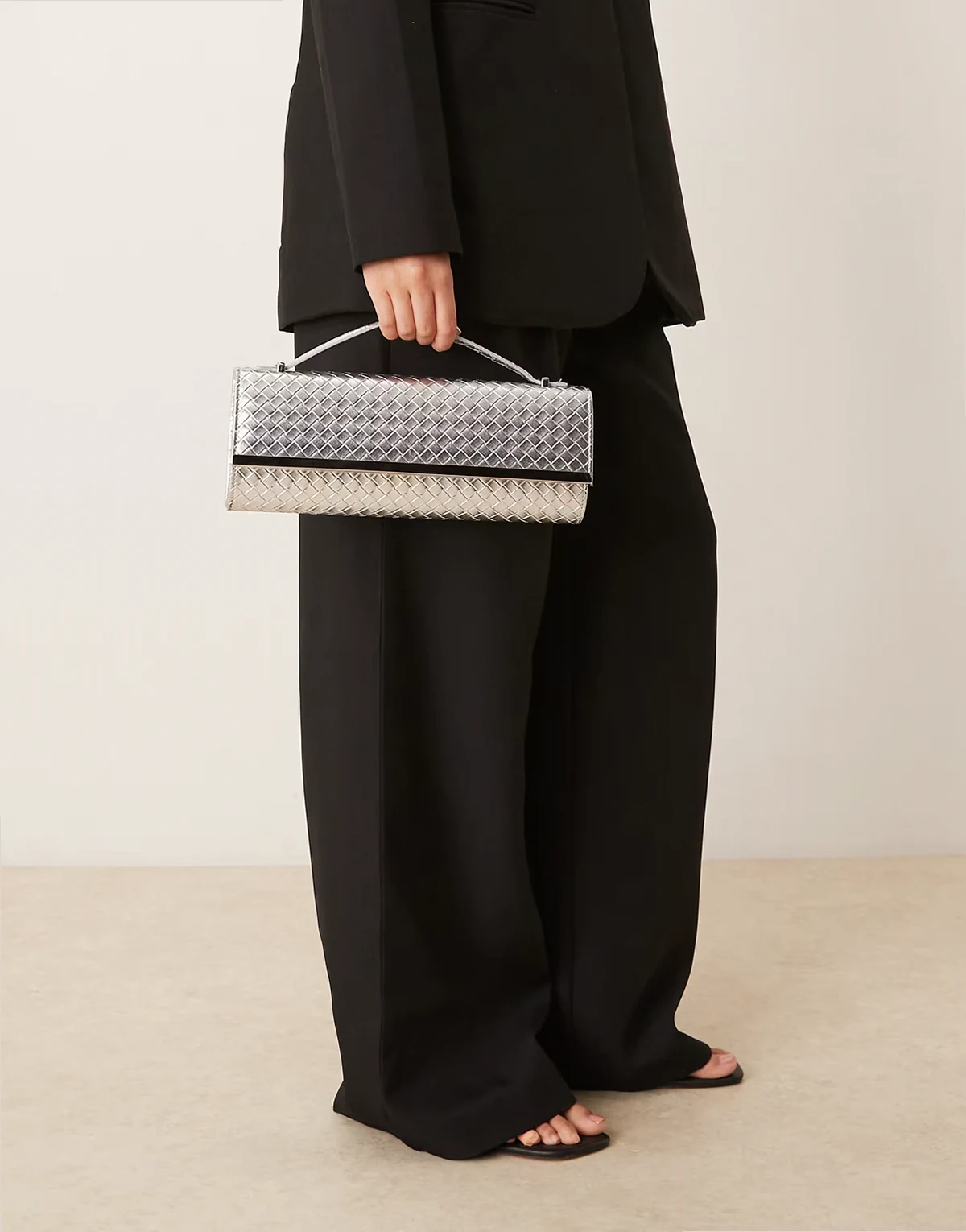 woven detailing elongated clutch purse in silver