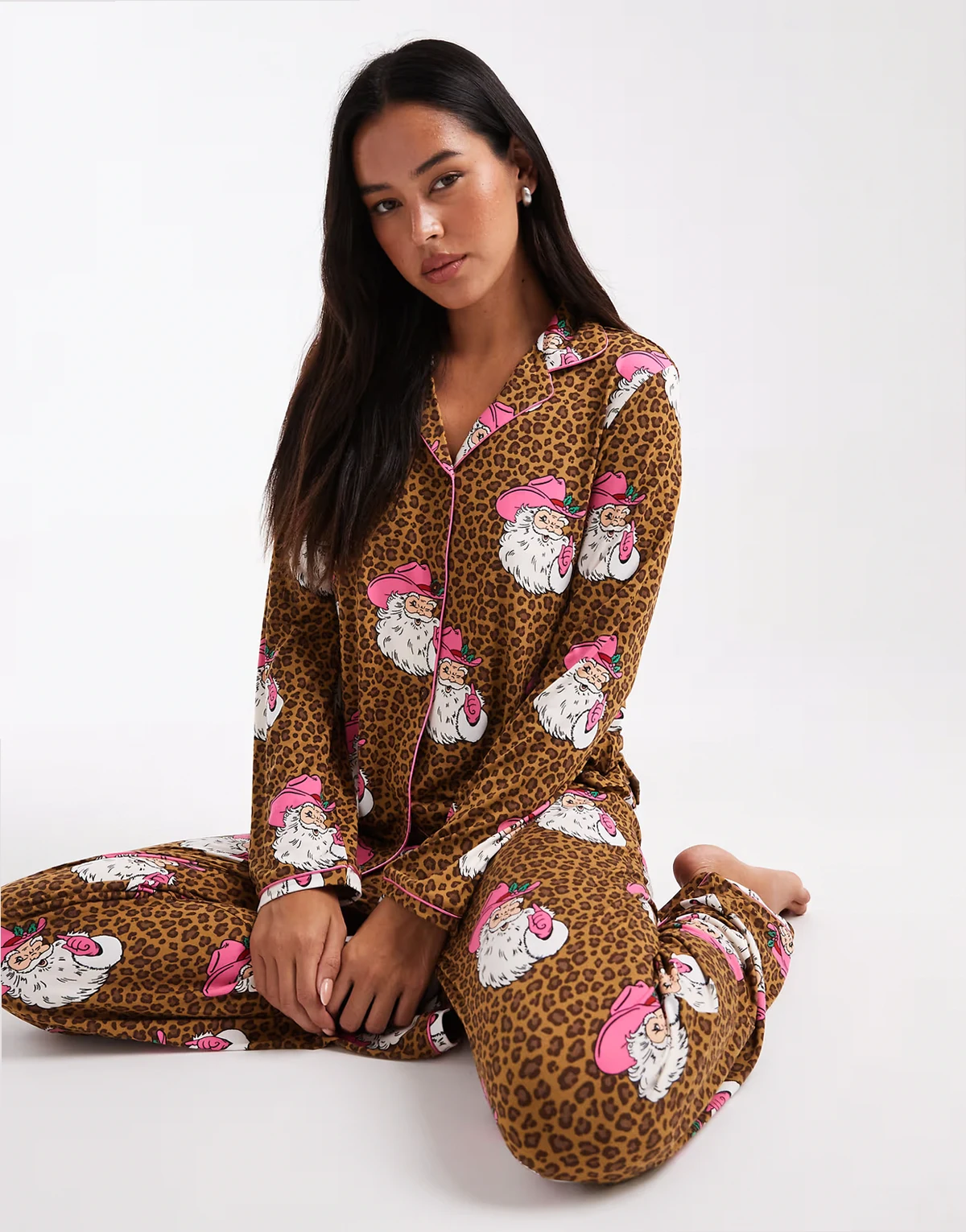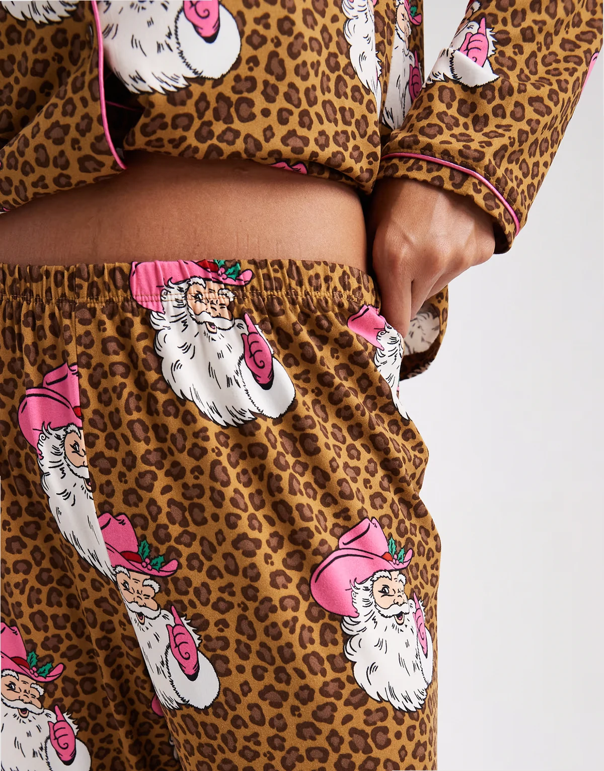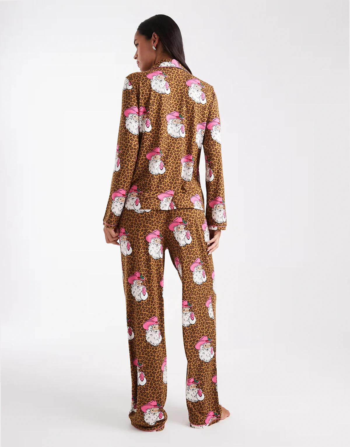 Christmas Santa leopard print pajama set in brown