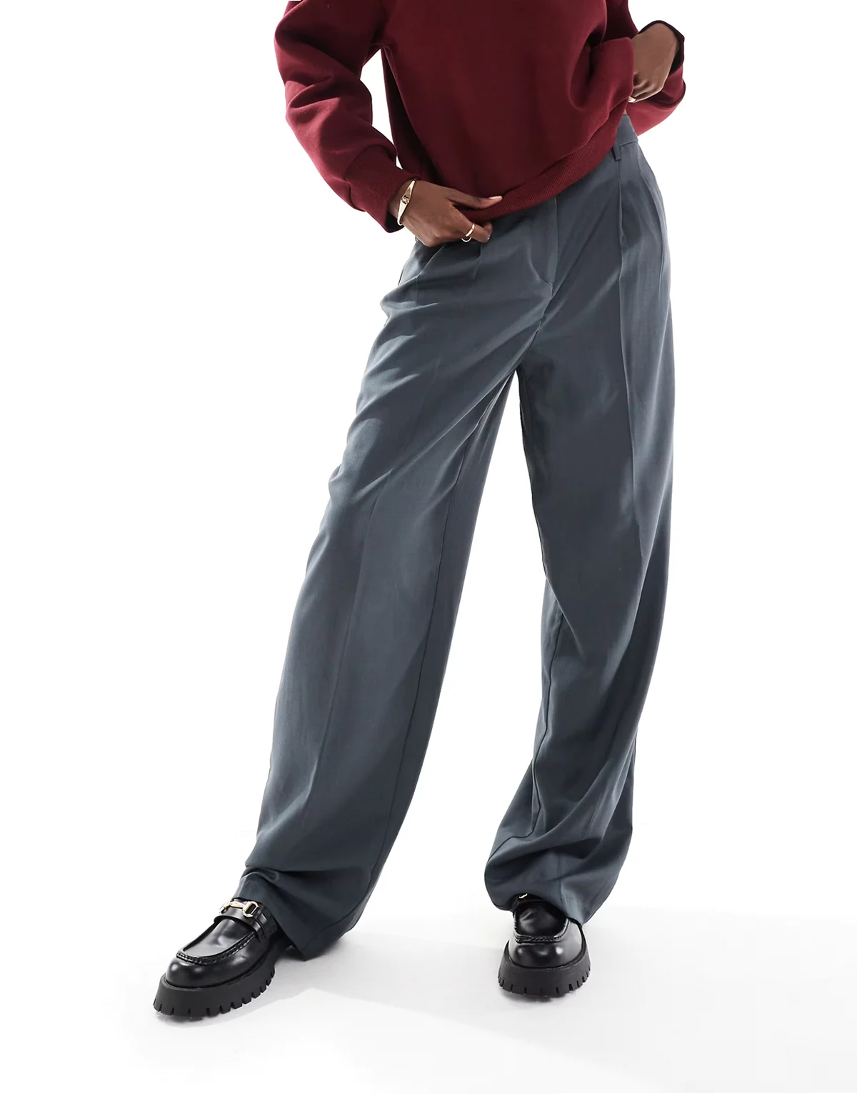 Rita tailored wide leg dad pants in asphalt gray