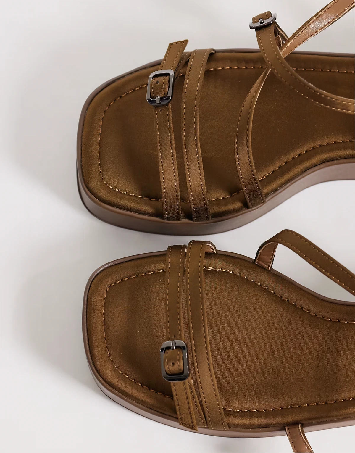 Fleetwood strappy flat sandals in olive satin