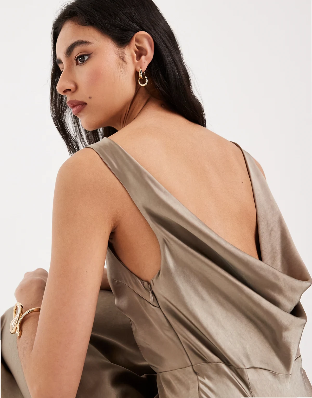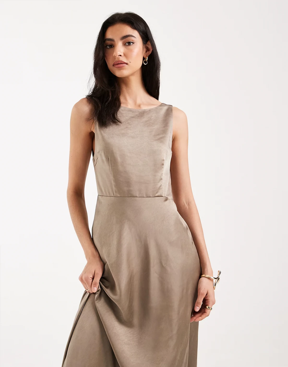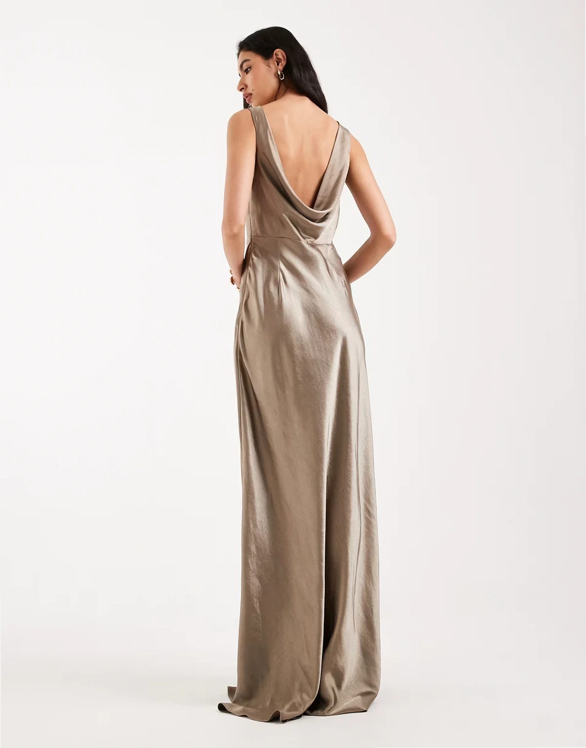 Bridesmaids satin cowl back maxi dress in mocha