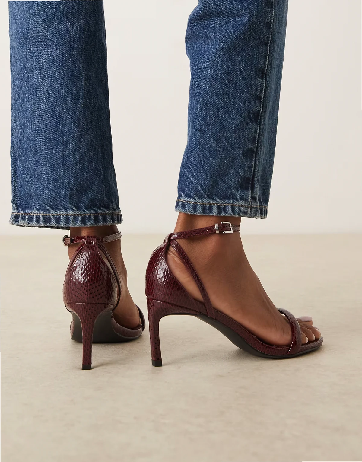 barely there heeled sandals in wine croc