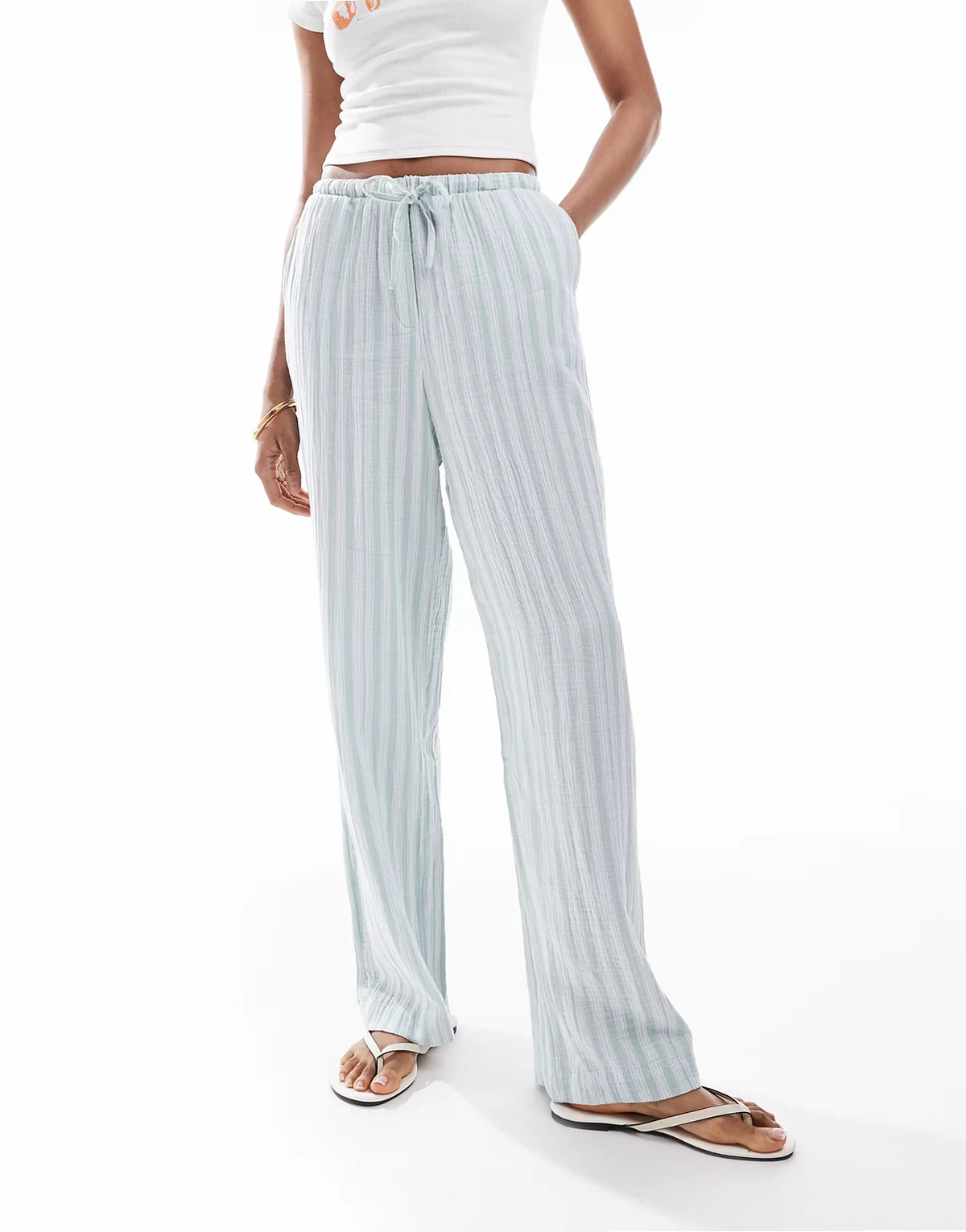 cotton wide leg pants in green stripe