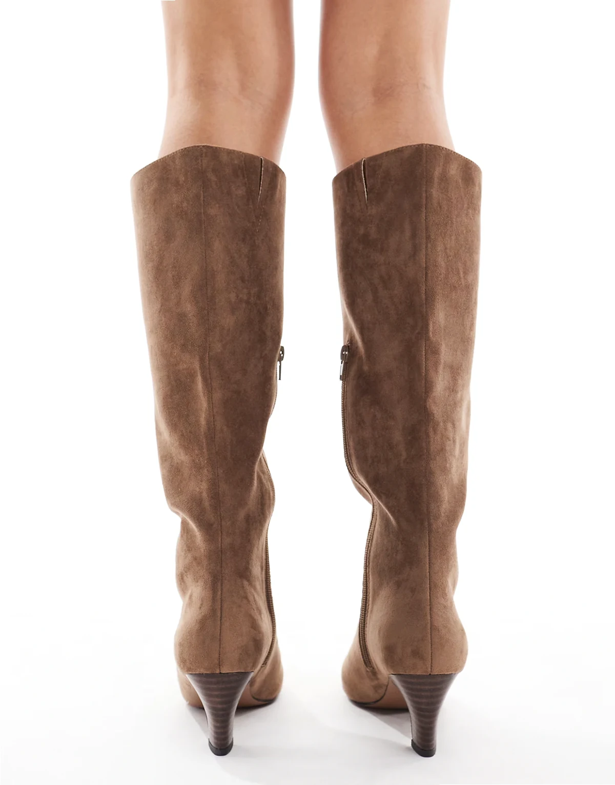 Delia kitten heel knee boots in moccha suedette