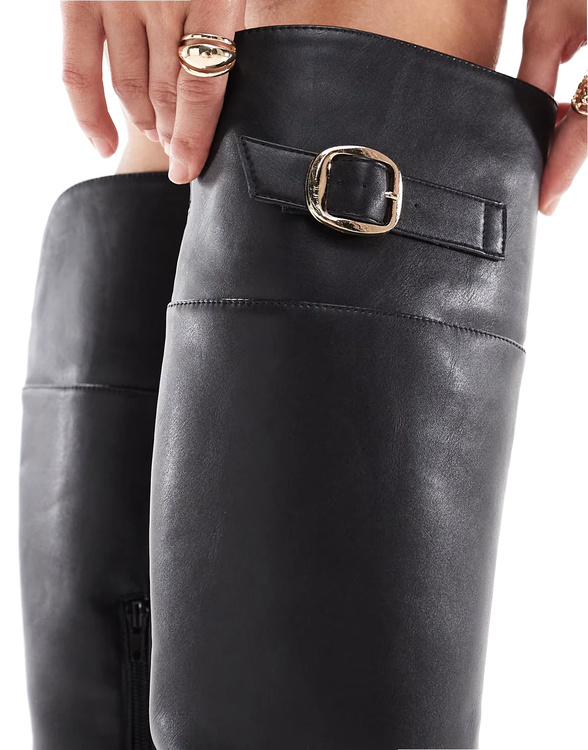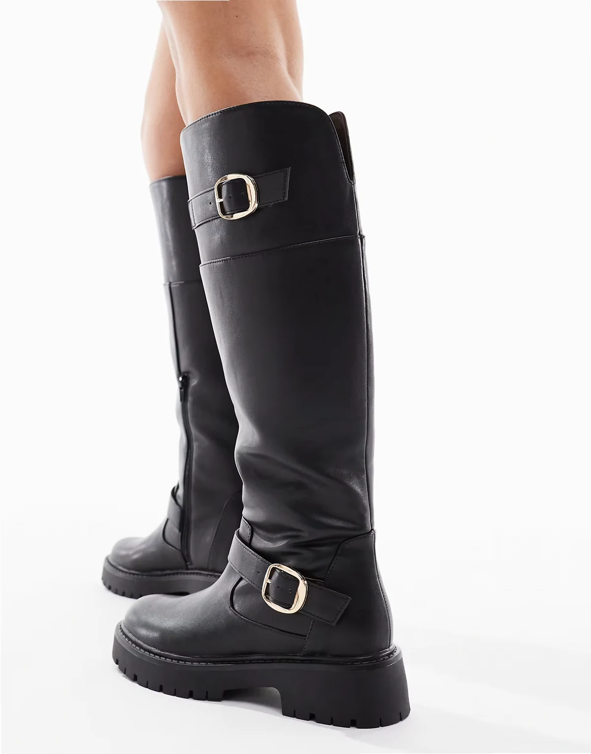 Olivia chunky knee boots with buckle detail in black