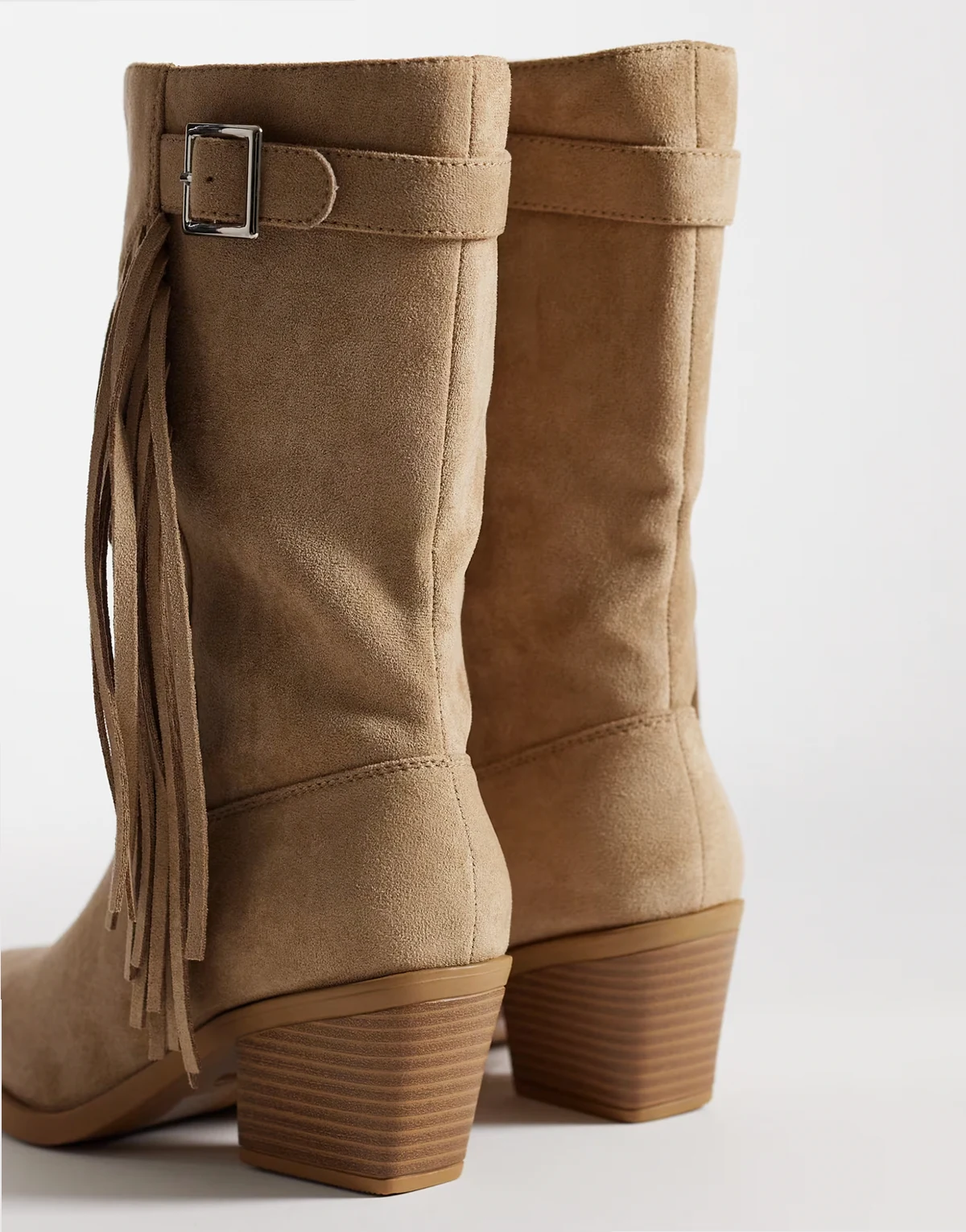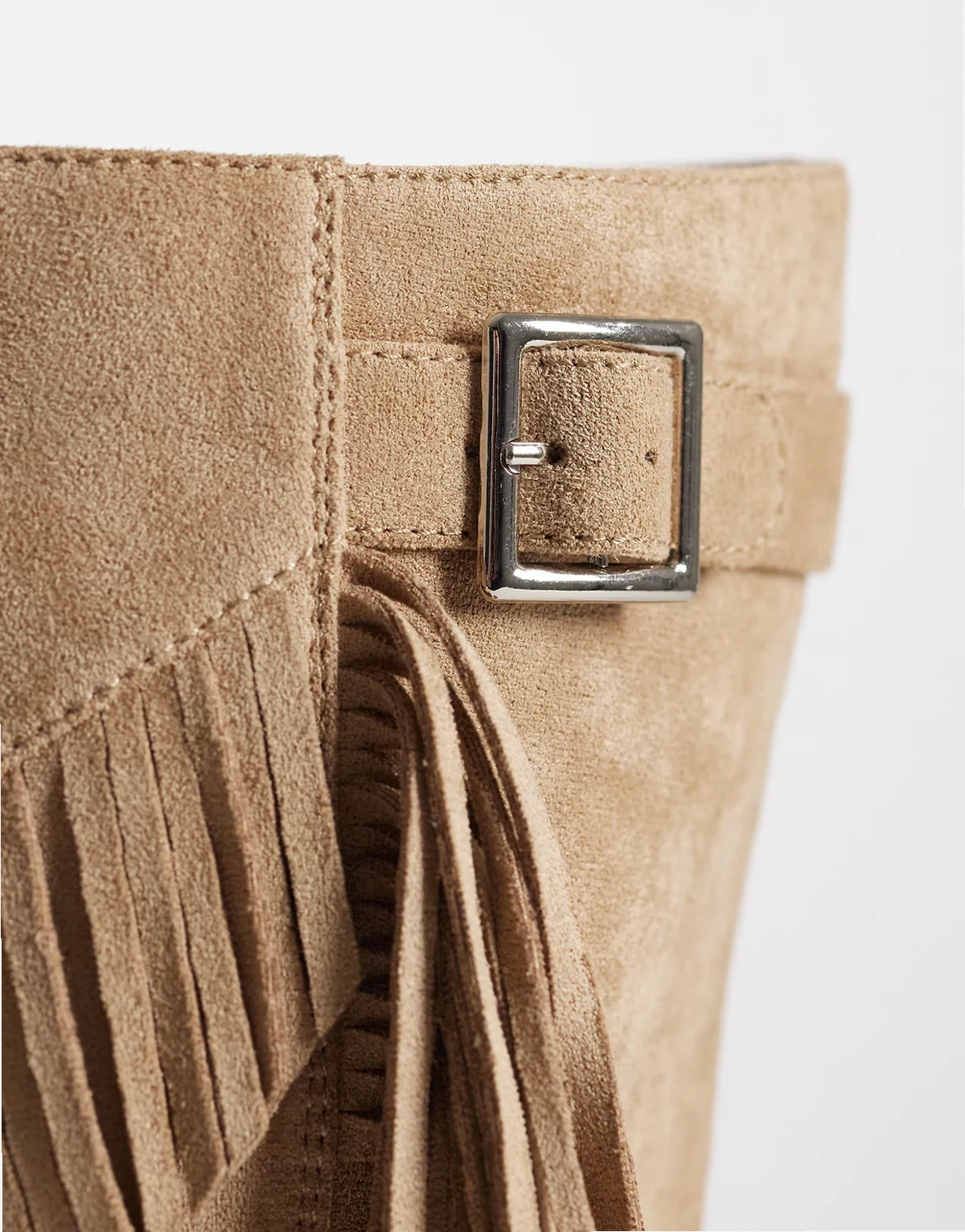 Western Knee Boots with buckle and fringing in sand micro