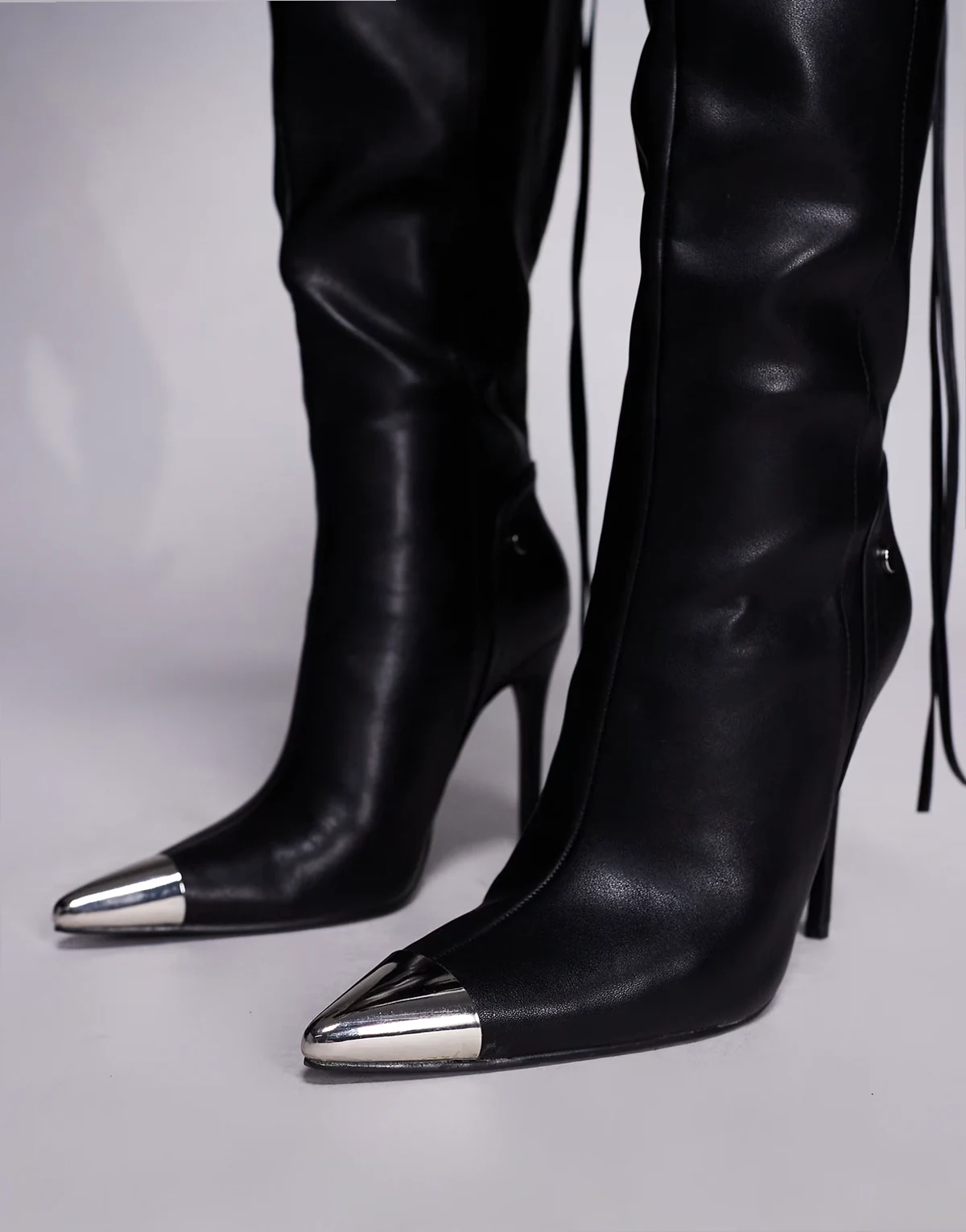 Finest stiletto heel knee boots with pointed metal toe in black