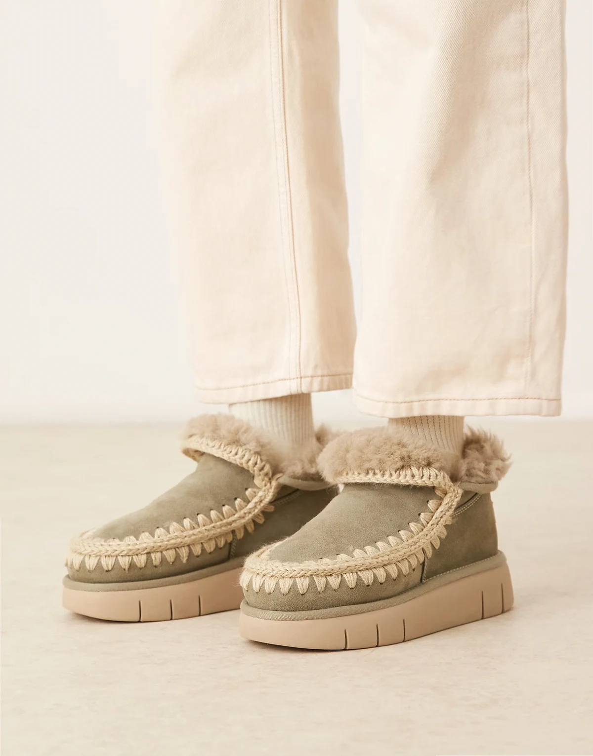 Lining: 100% Leather, Sole: 65% Ethylene vinyl acetate, 35% Rubber, Upper: 70% Sheepskin, 30% Suede.