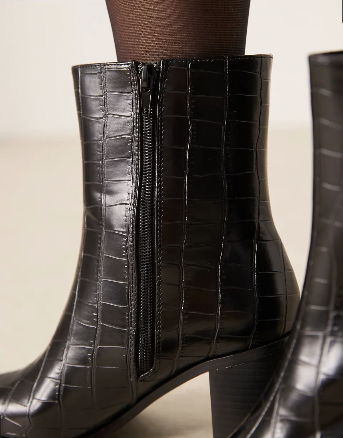 pointed toe ankle boots in black croc