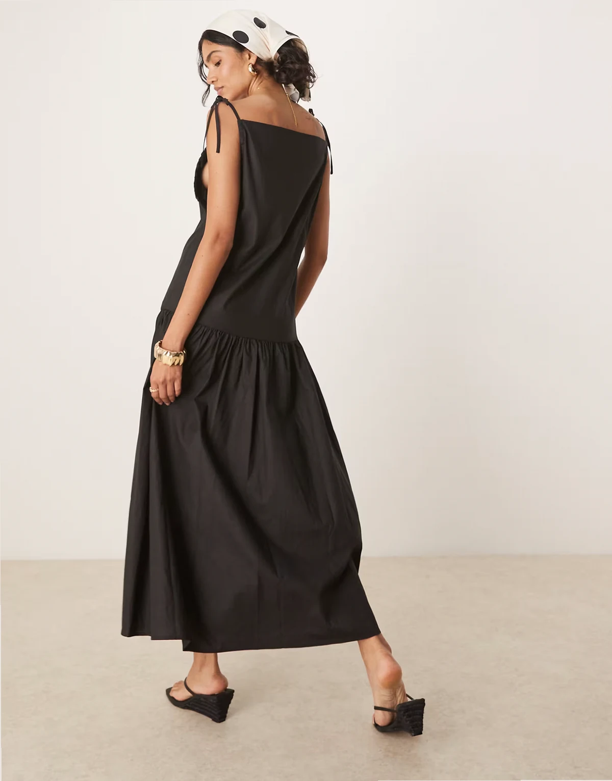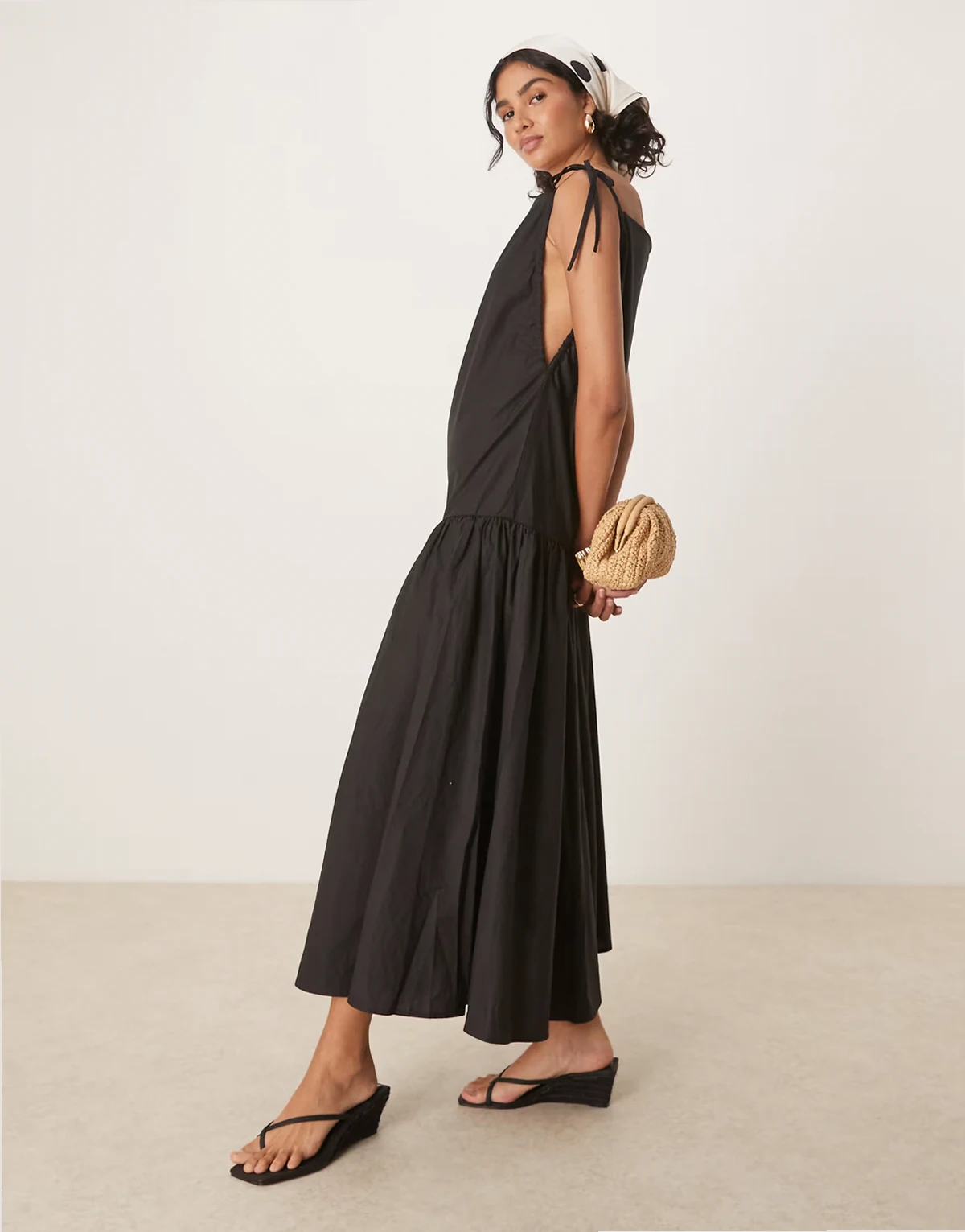 bow shoulders midaxi dress in black
