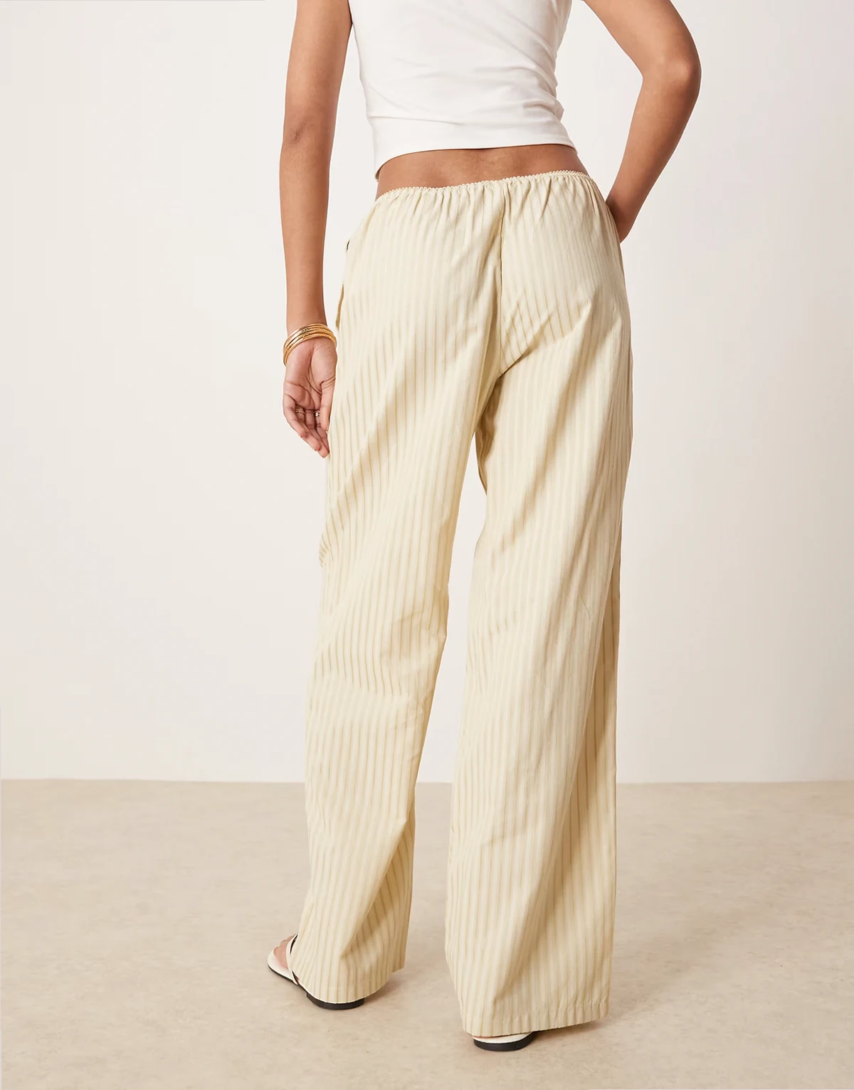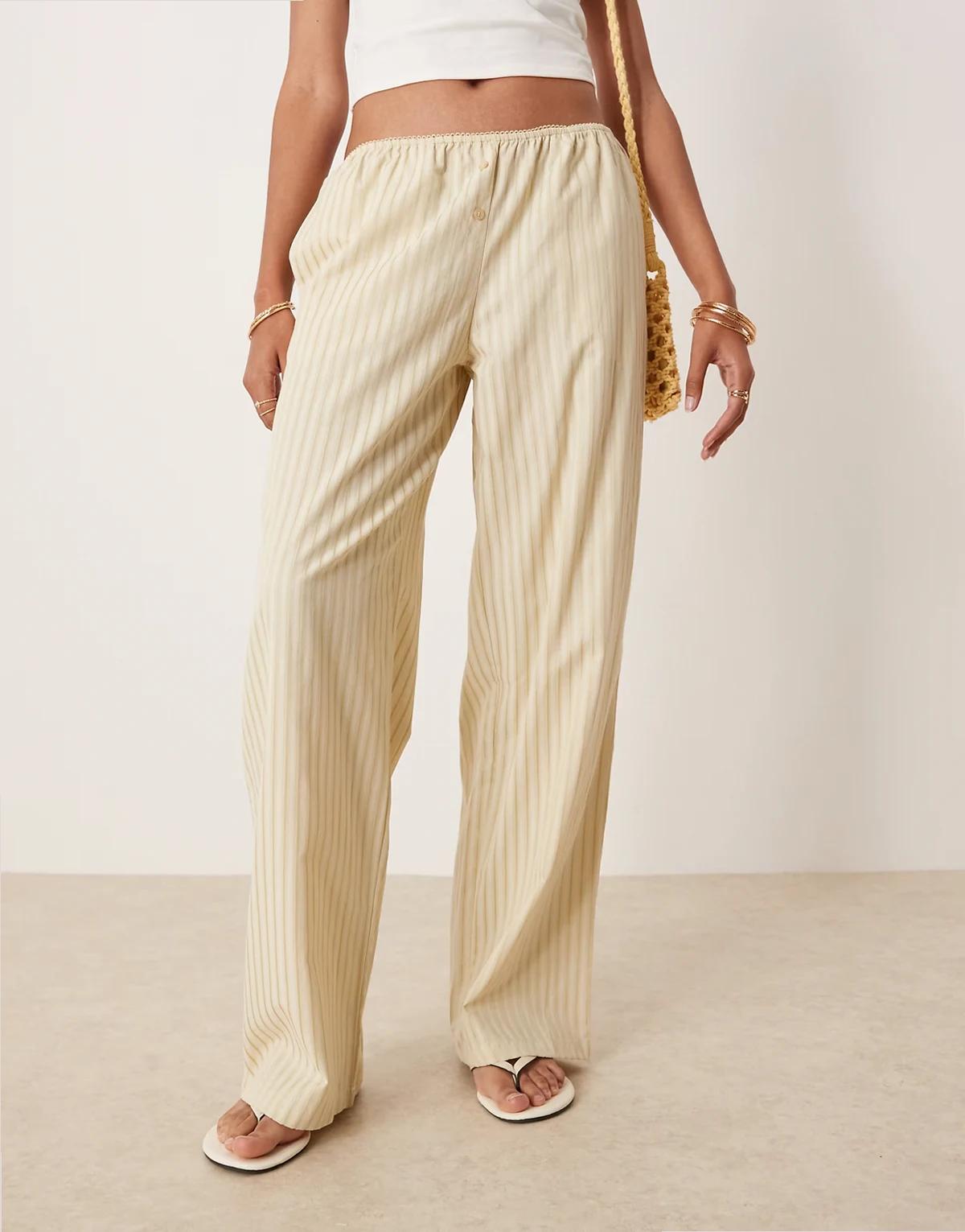low rise wide leg poplin pants in yellow stripe