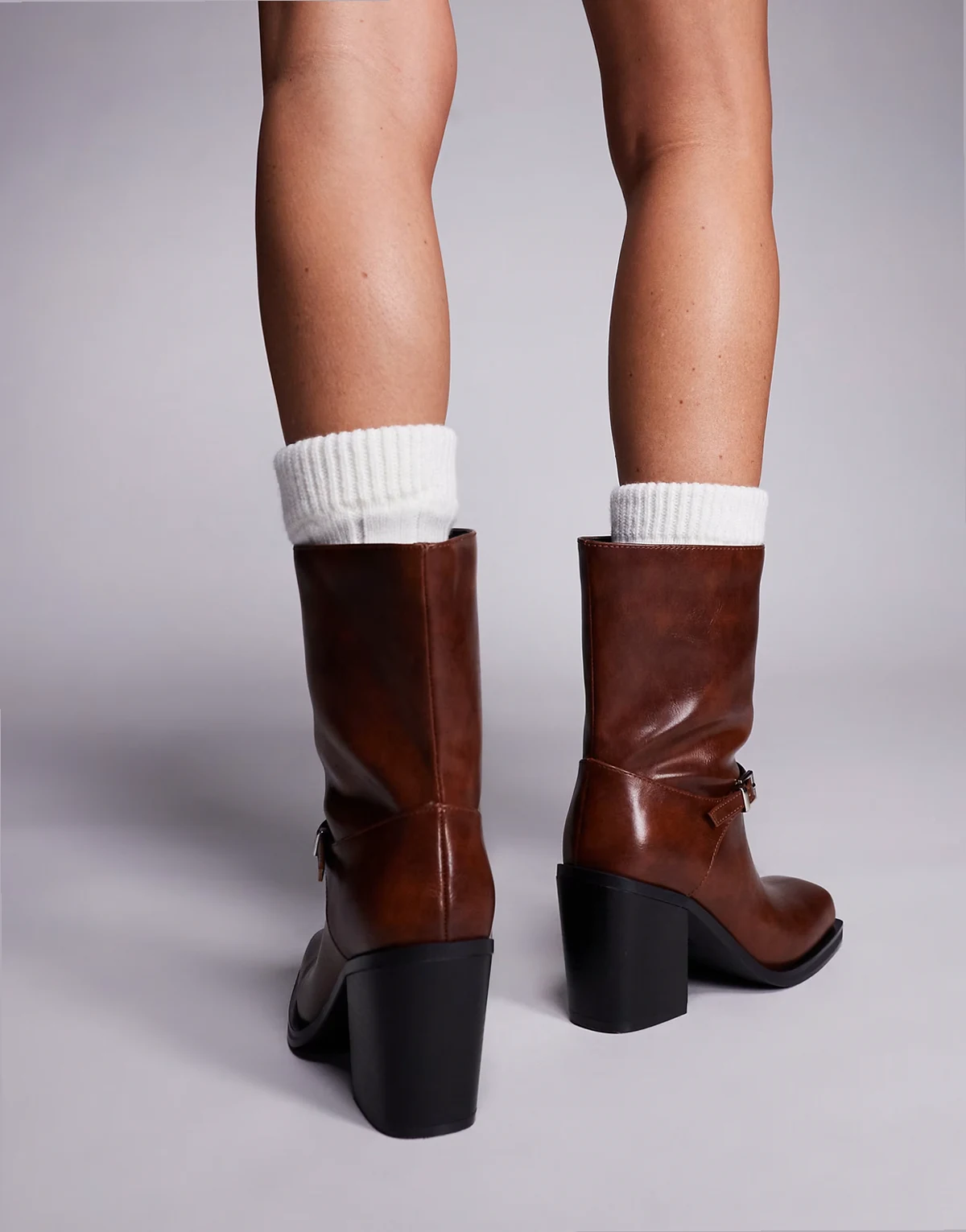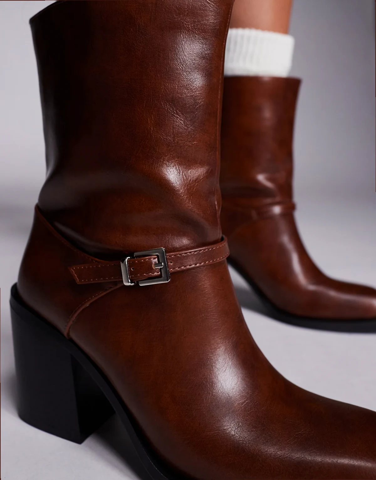 Dusty square toe heeled ankle boots in brown