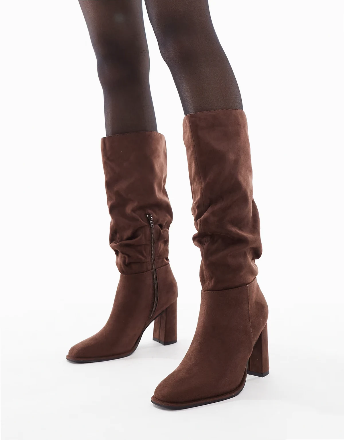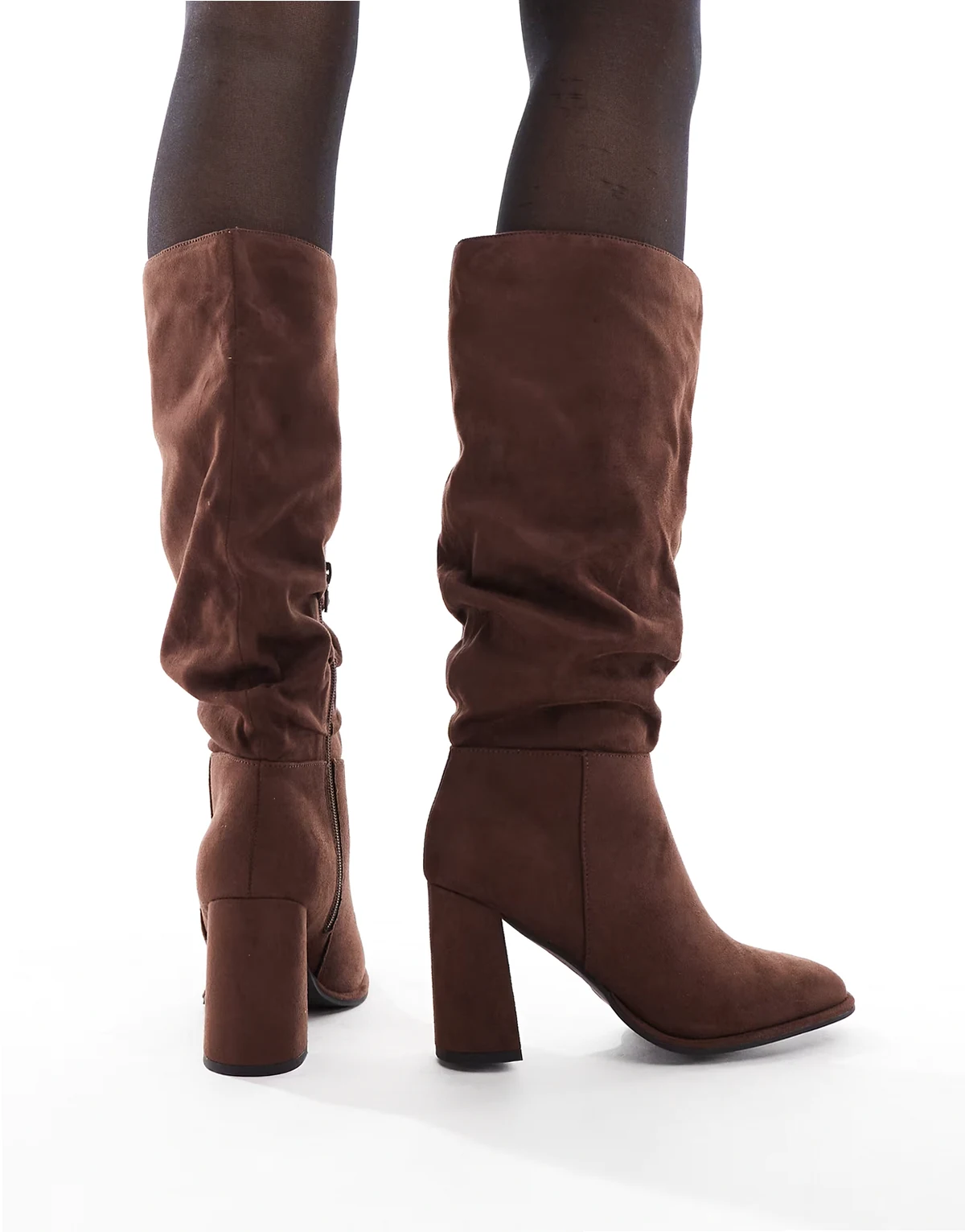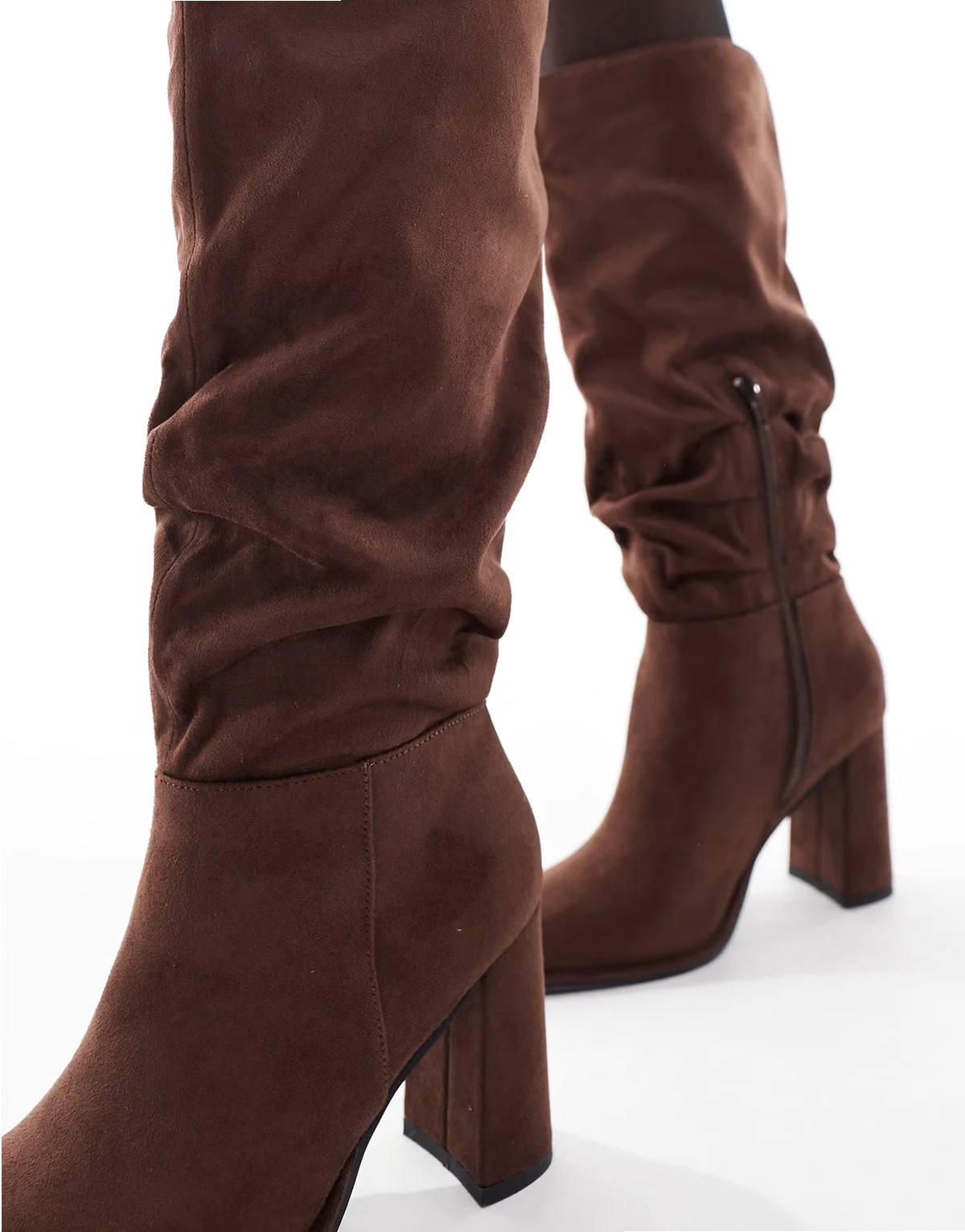 Maggie slouchy block heel boots in chocolate