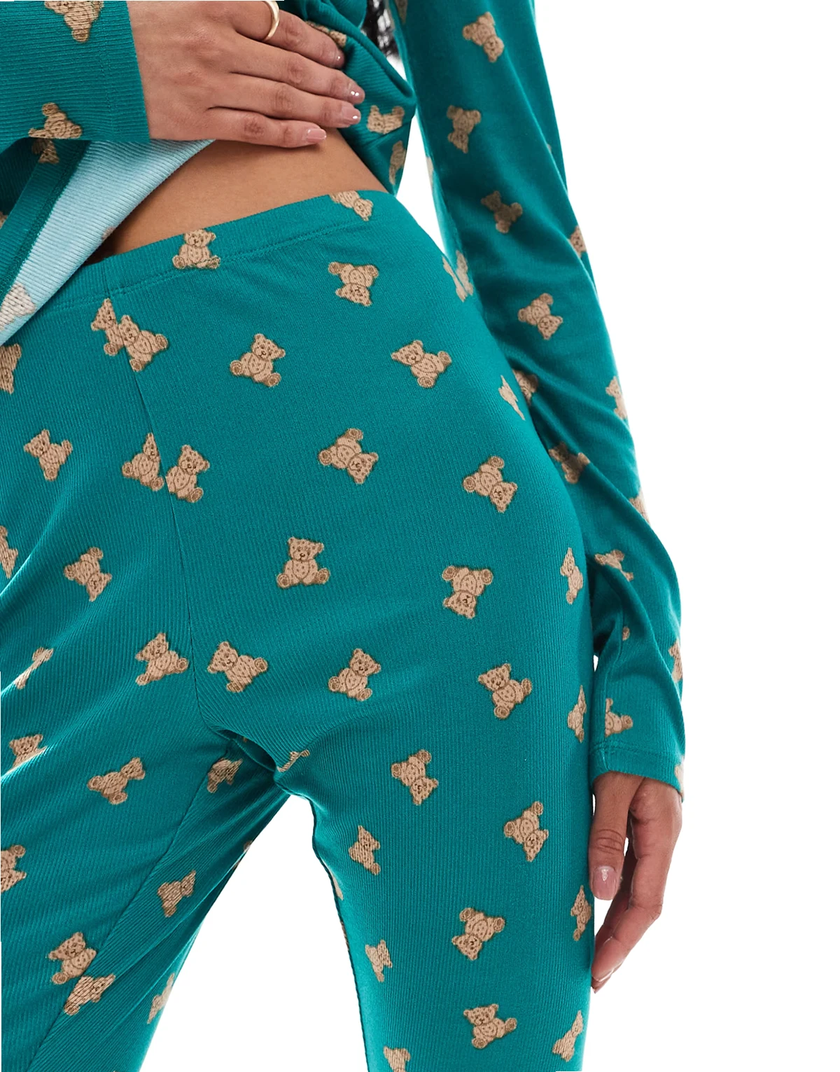 teddy print rib pajama bottom in teal