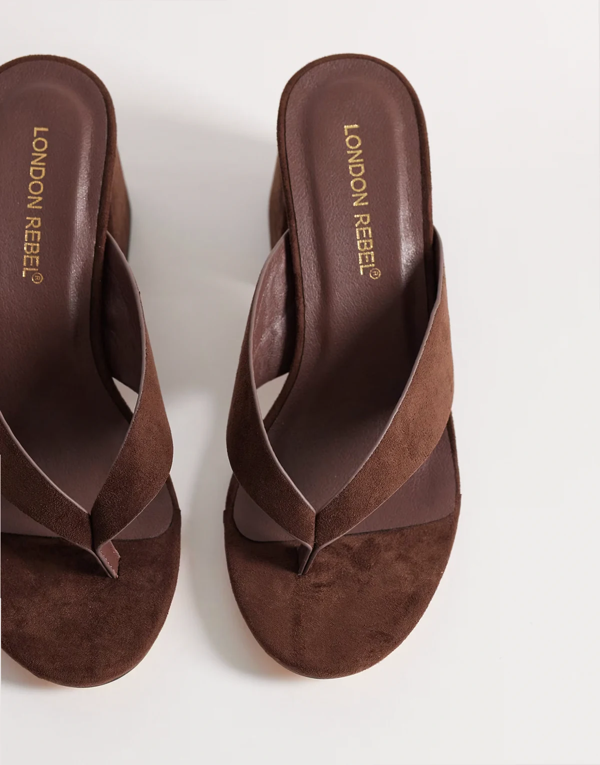 Elle heeled flip flop sandals in chocolate