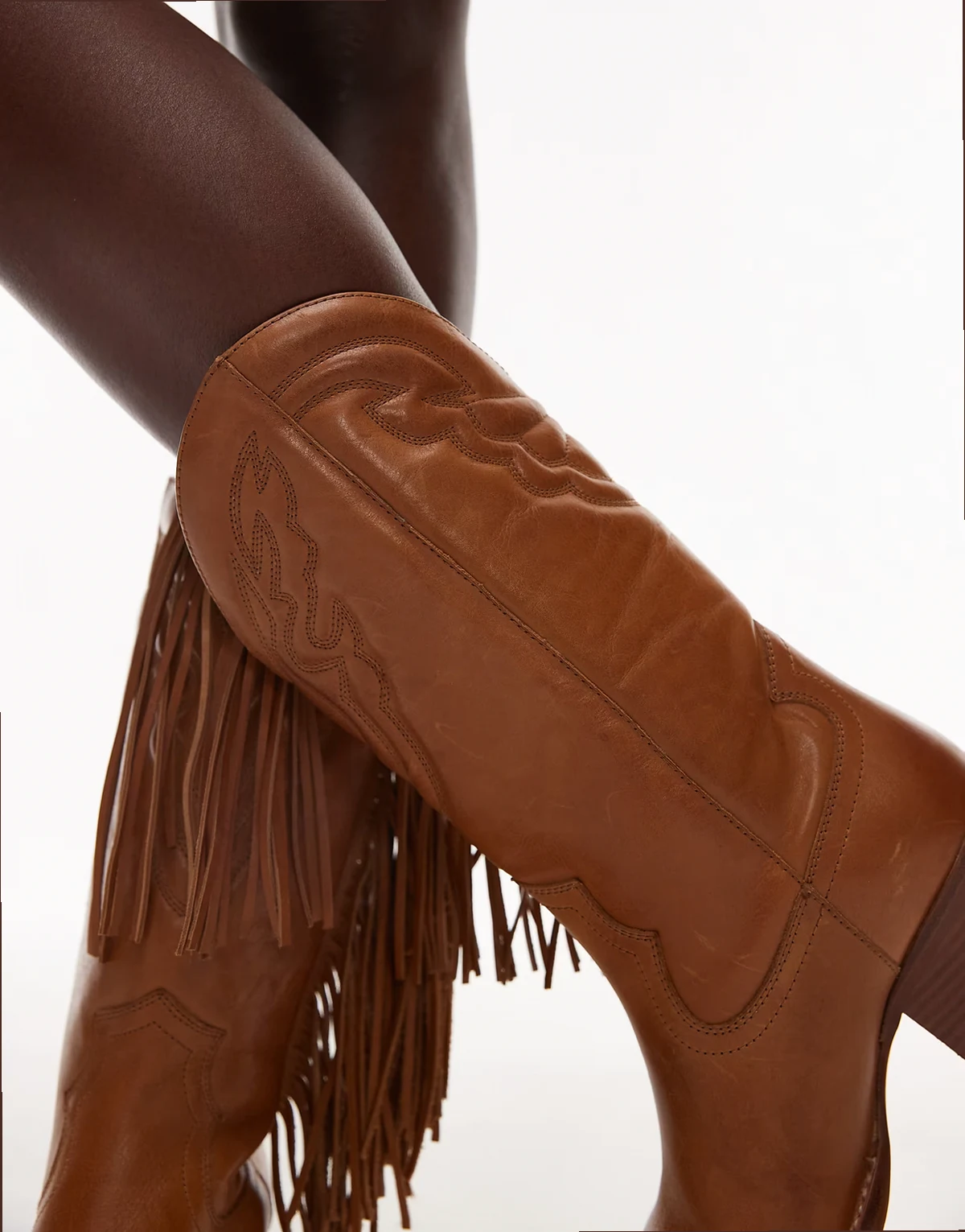 Jukeson tassel western knee boots in toffee smooth leather