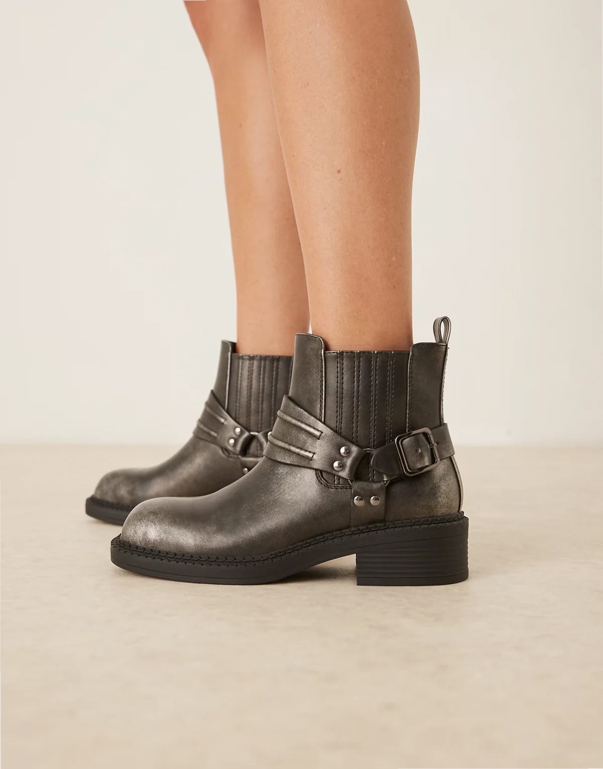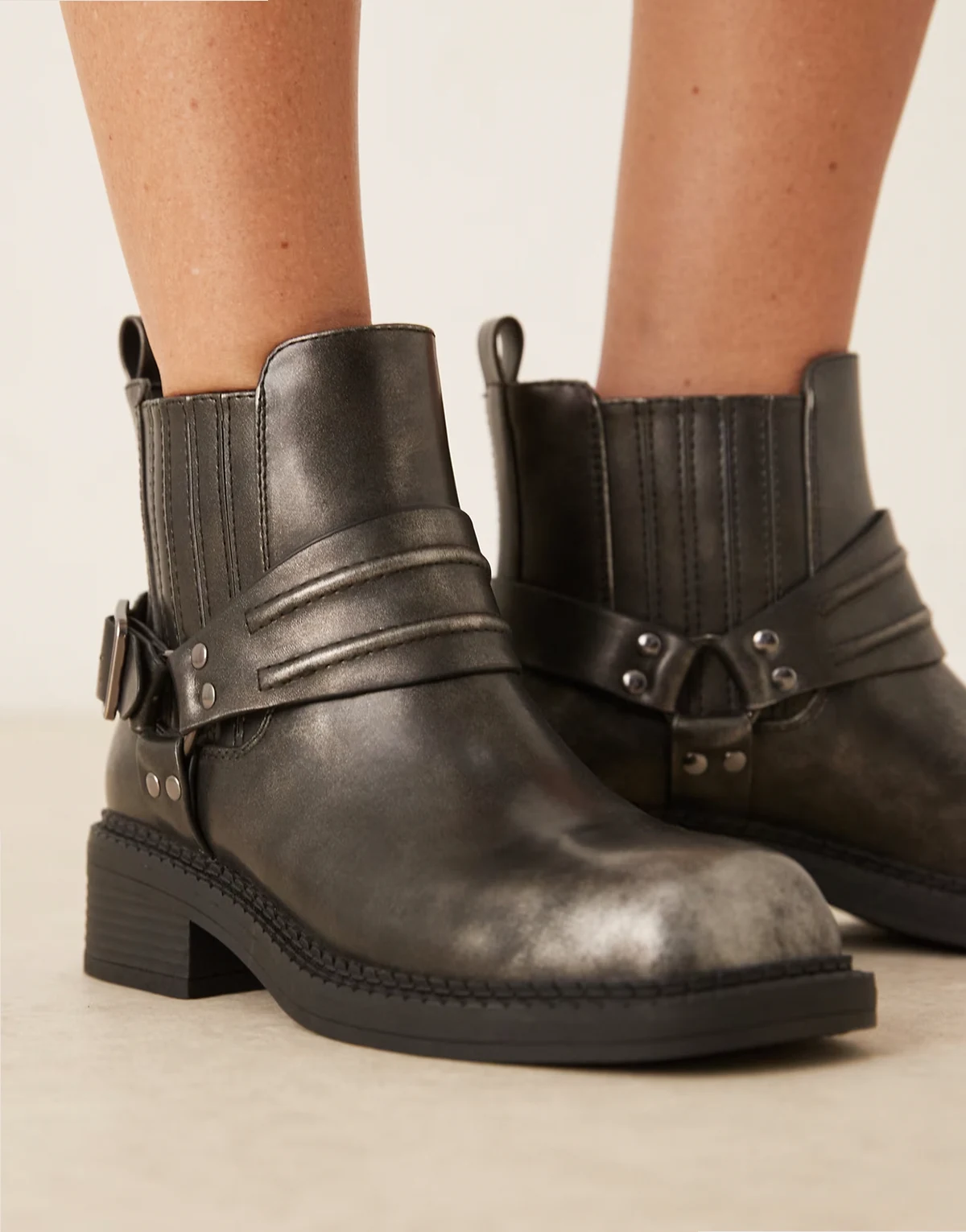 harness low ankle boots in washed black