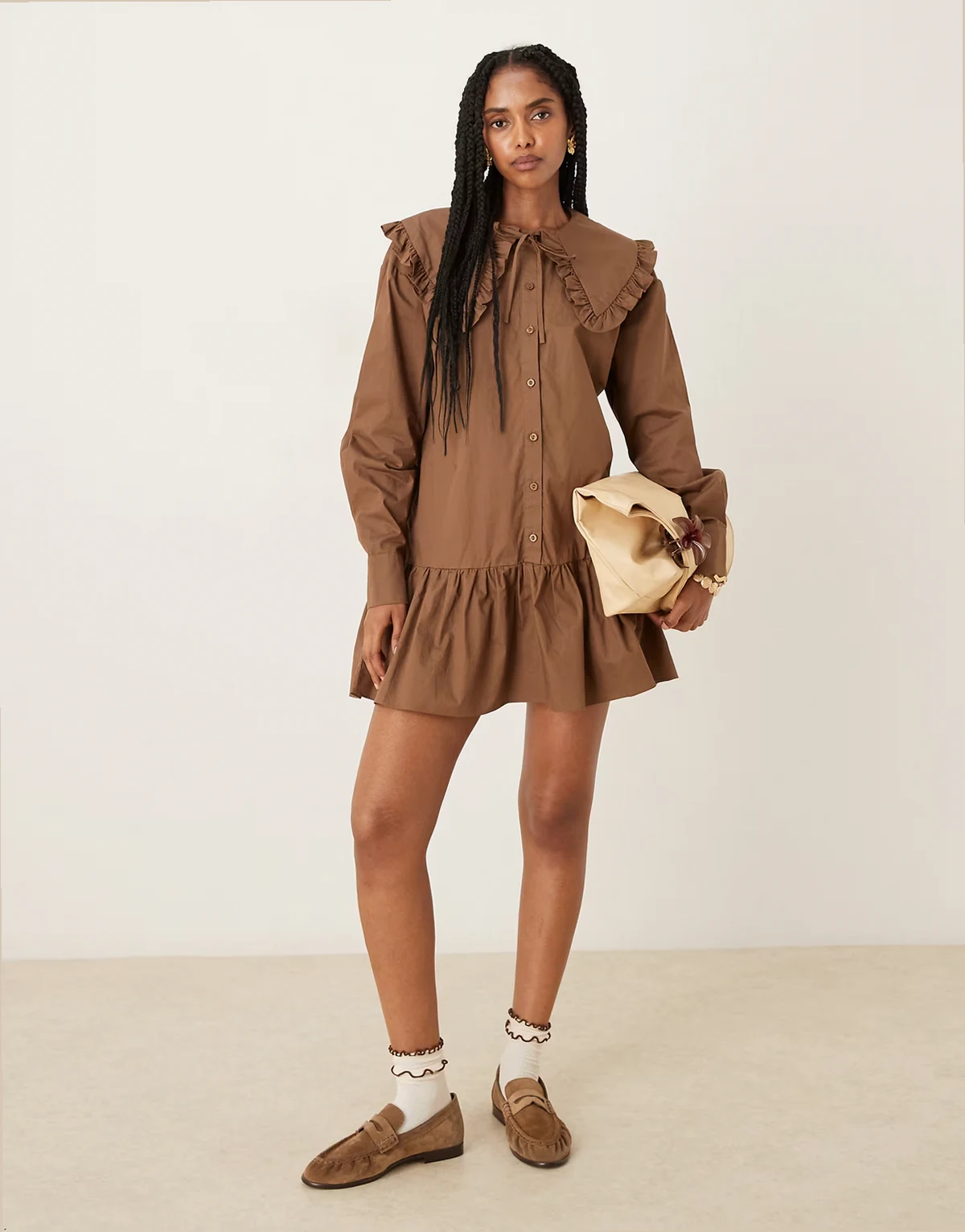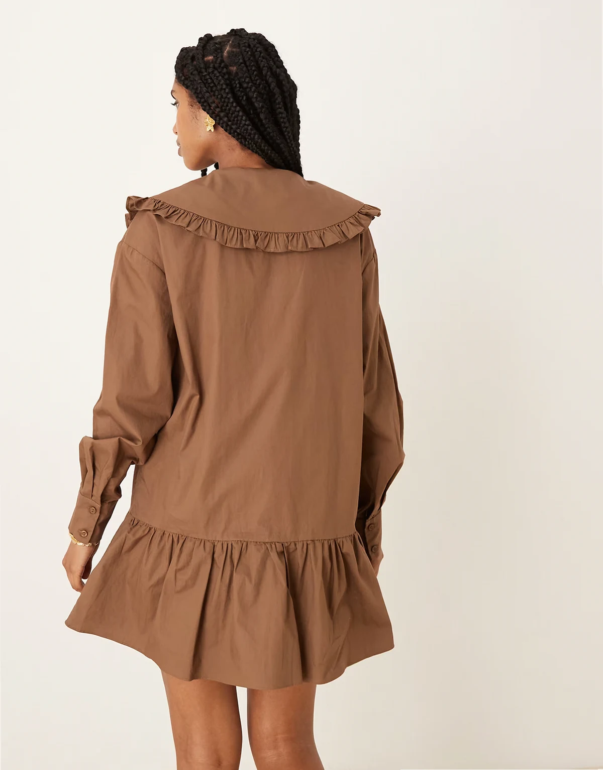 button up smock mini dress in brown