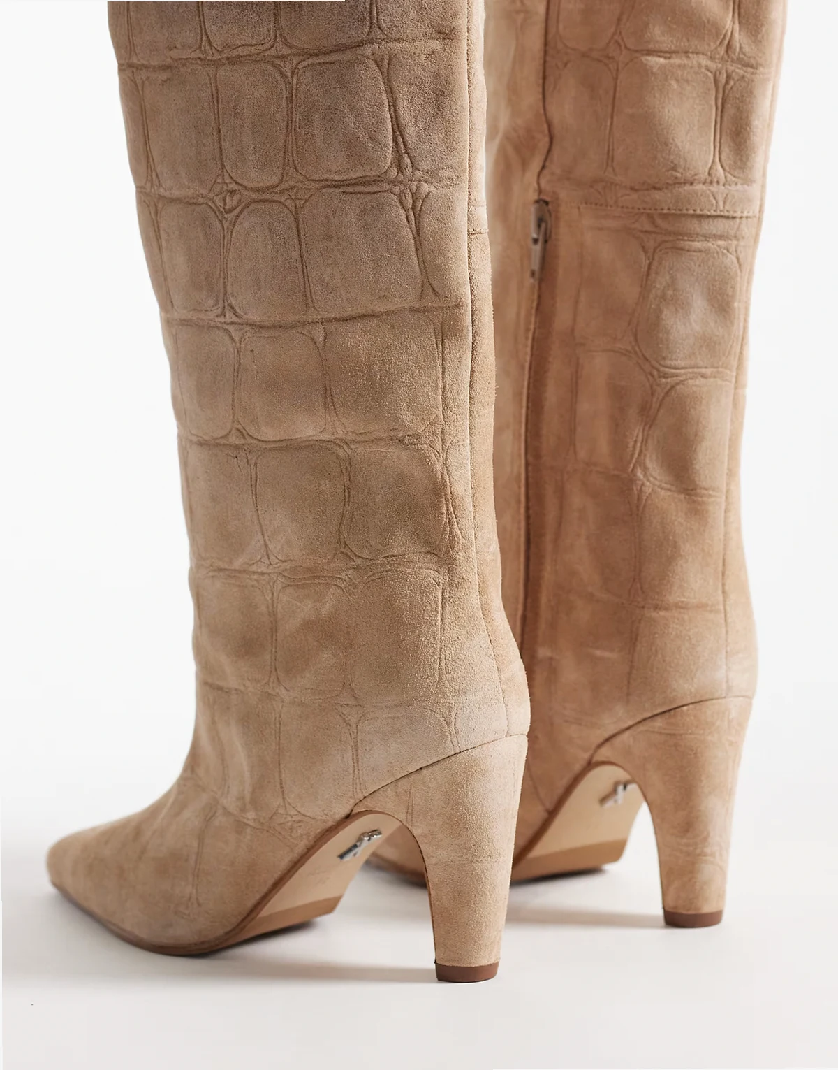 Low-Jadey kitten heel knee boots in croc suede