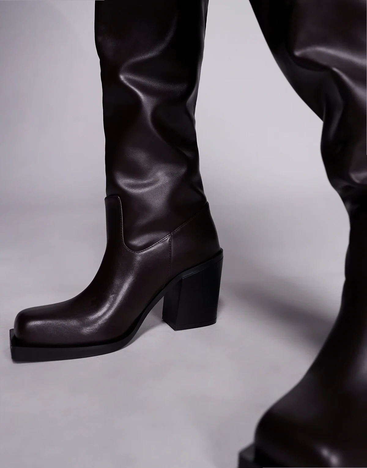 Carter over the knee block heeled boots in dark brown