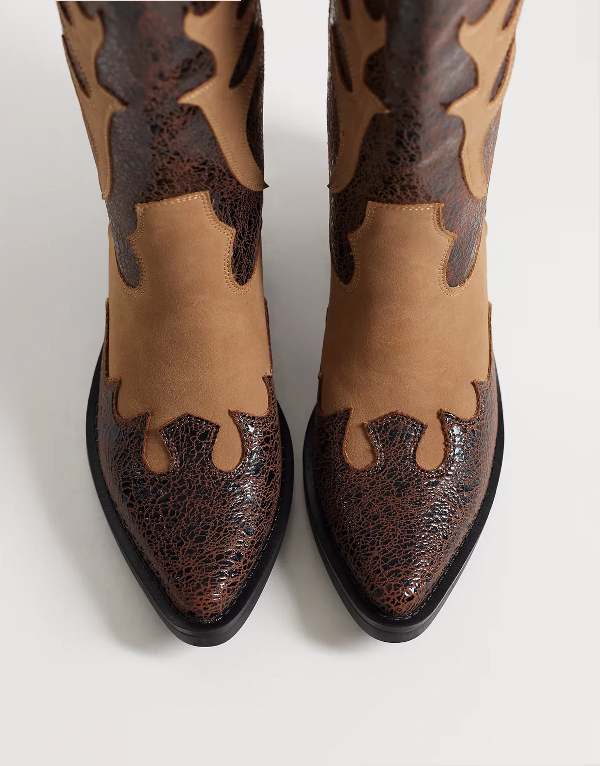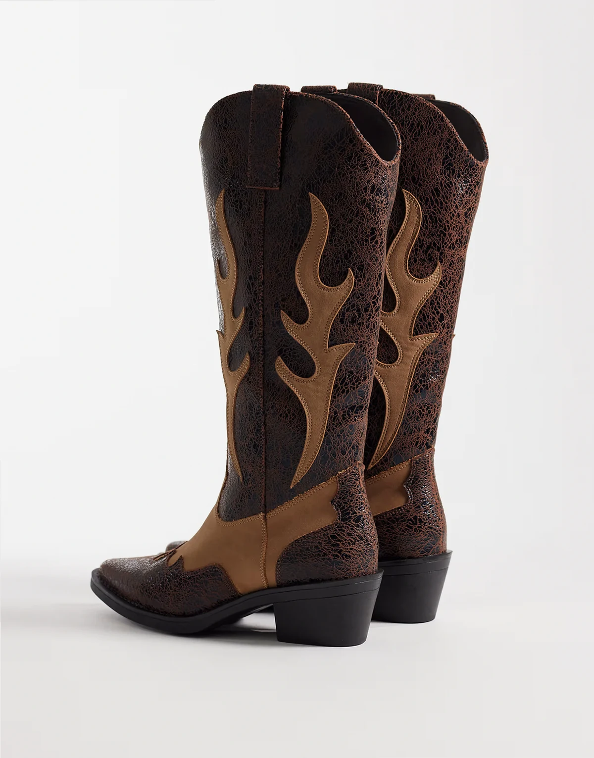cowboy knee boots in black and tan