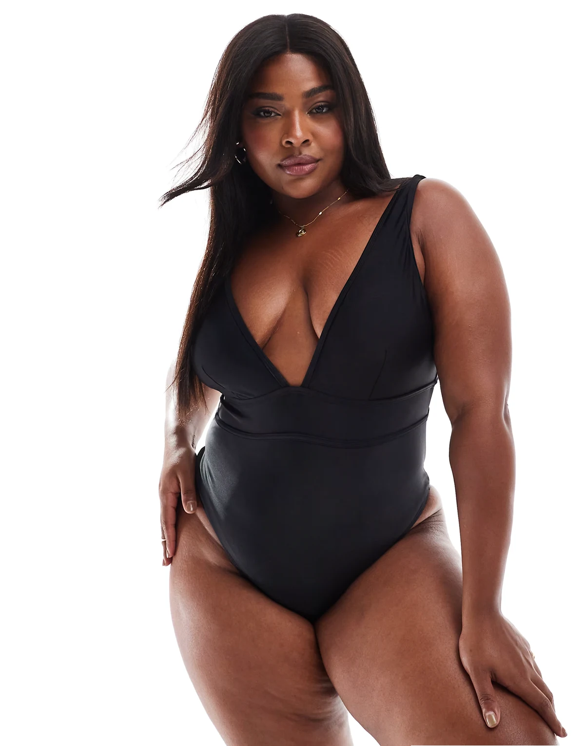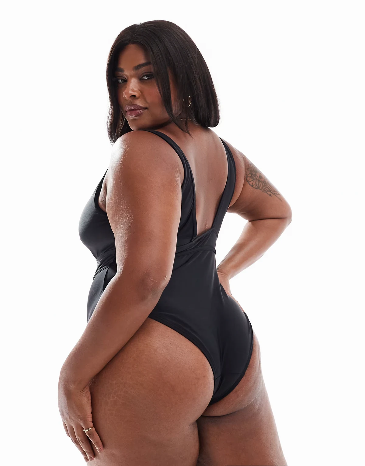 swimsuit with deep band/ belt in black