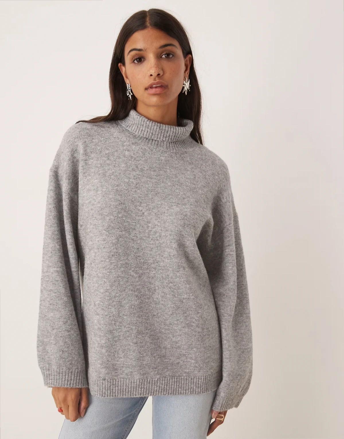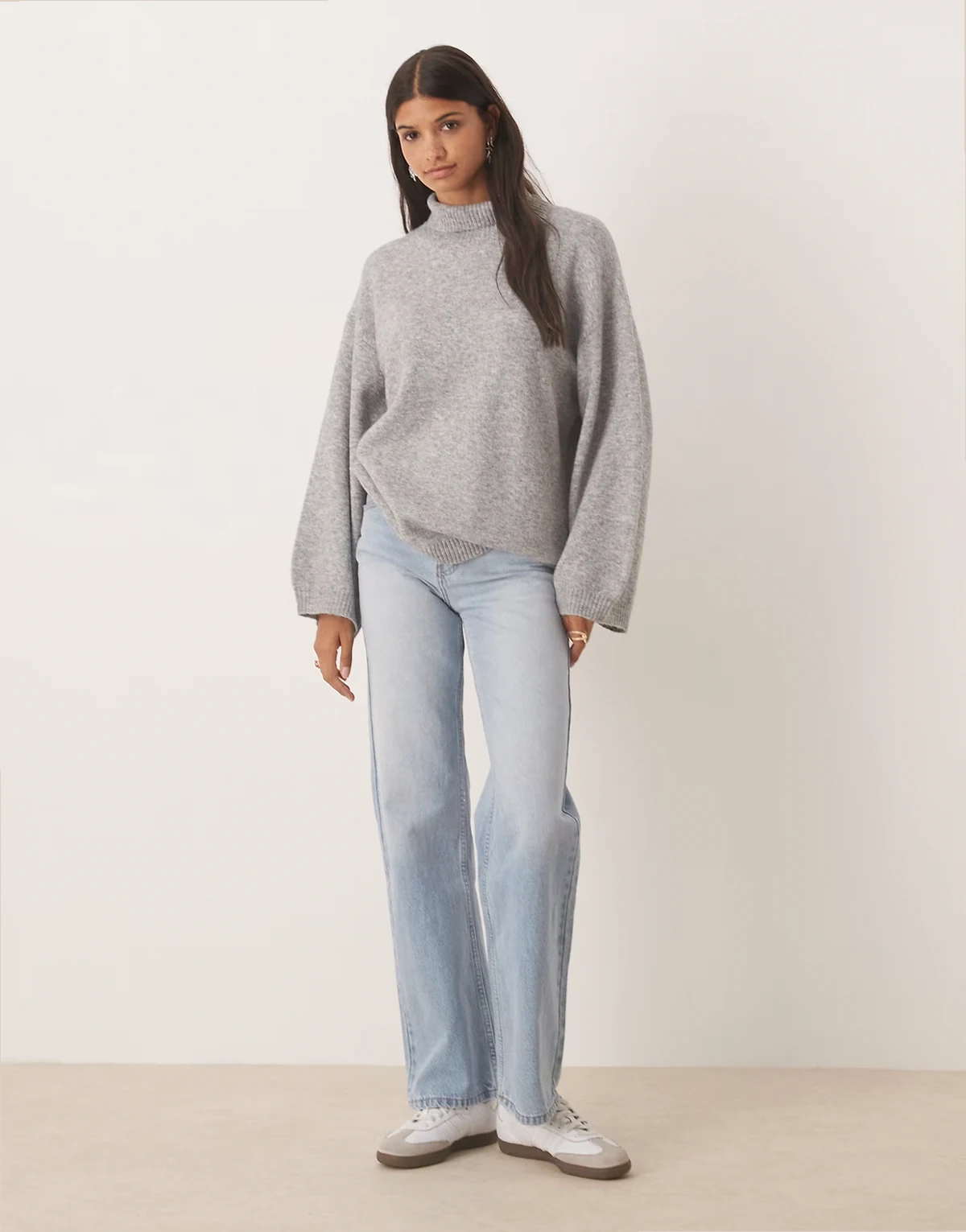 wide sleeve oversized sweater in gray