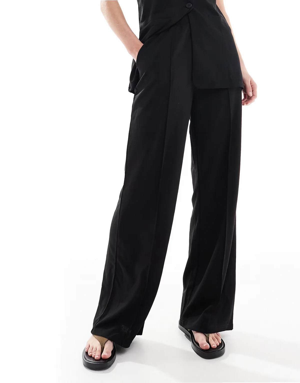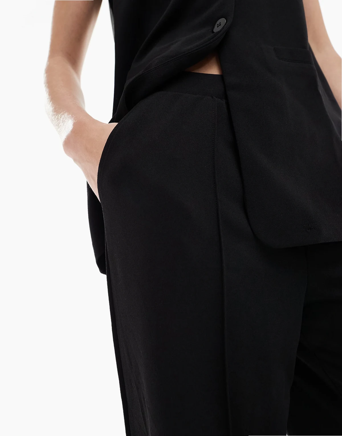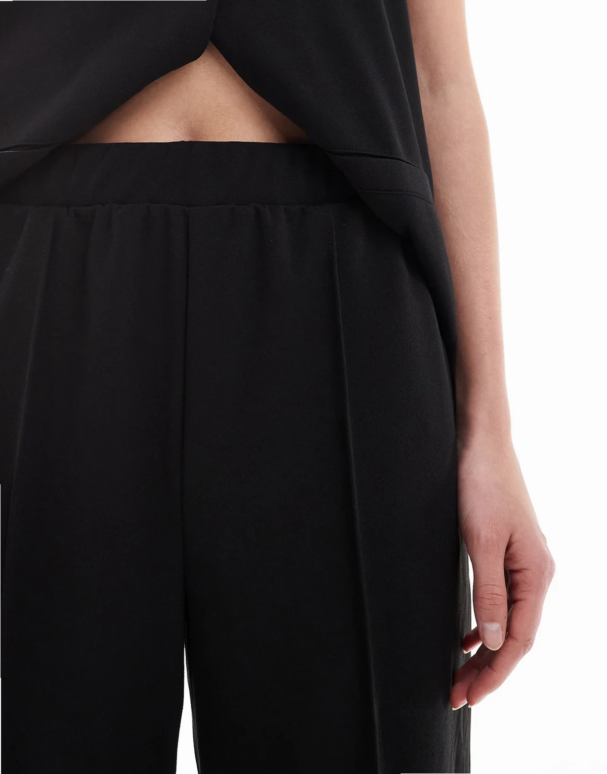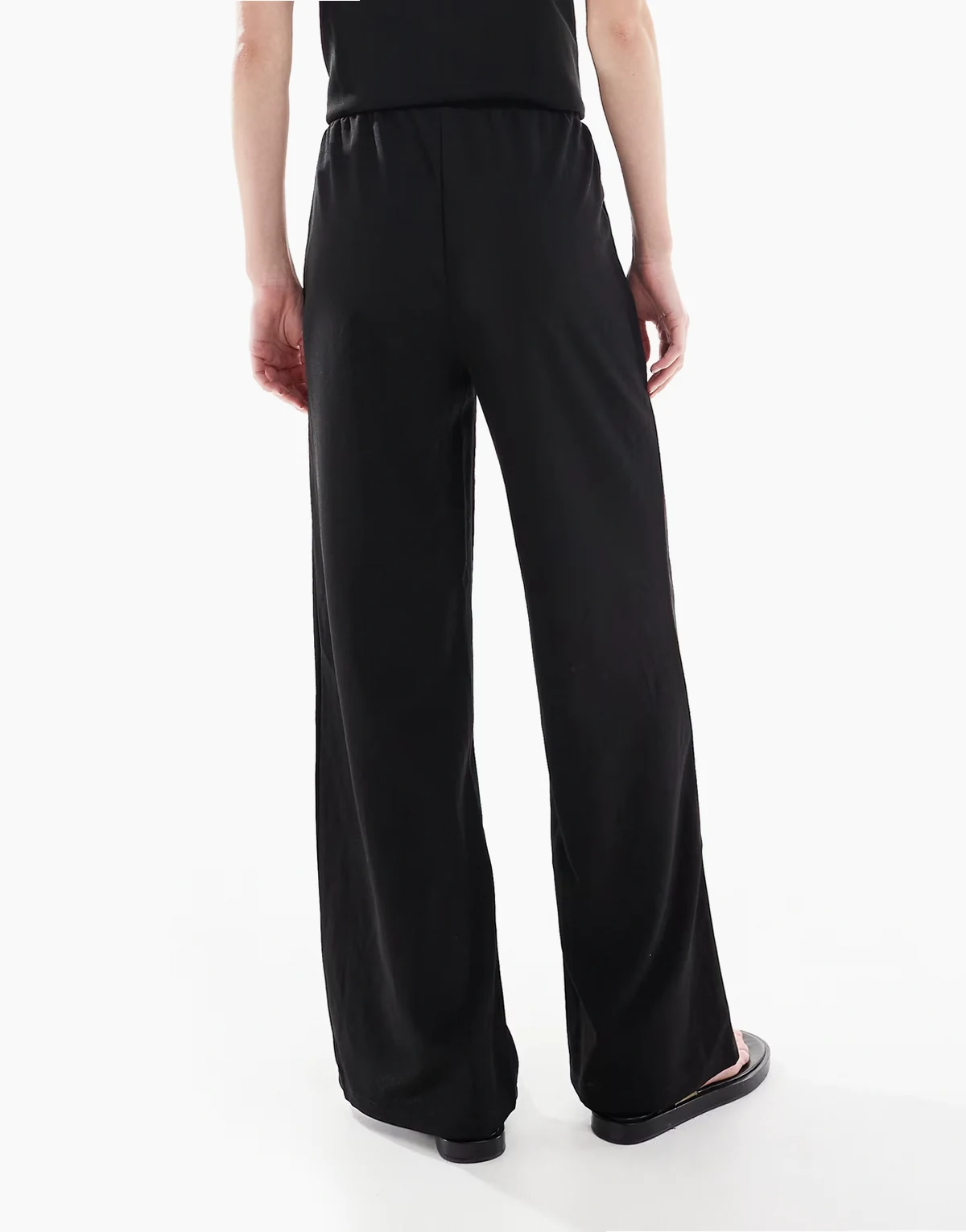 wide leg jersey crepe pants in black