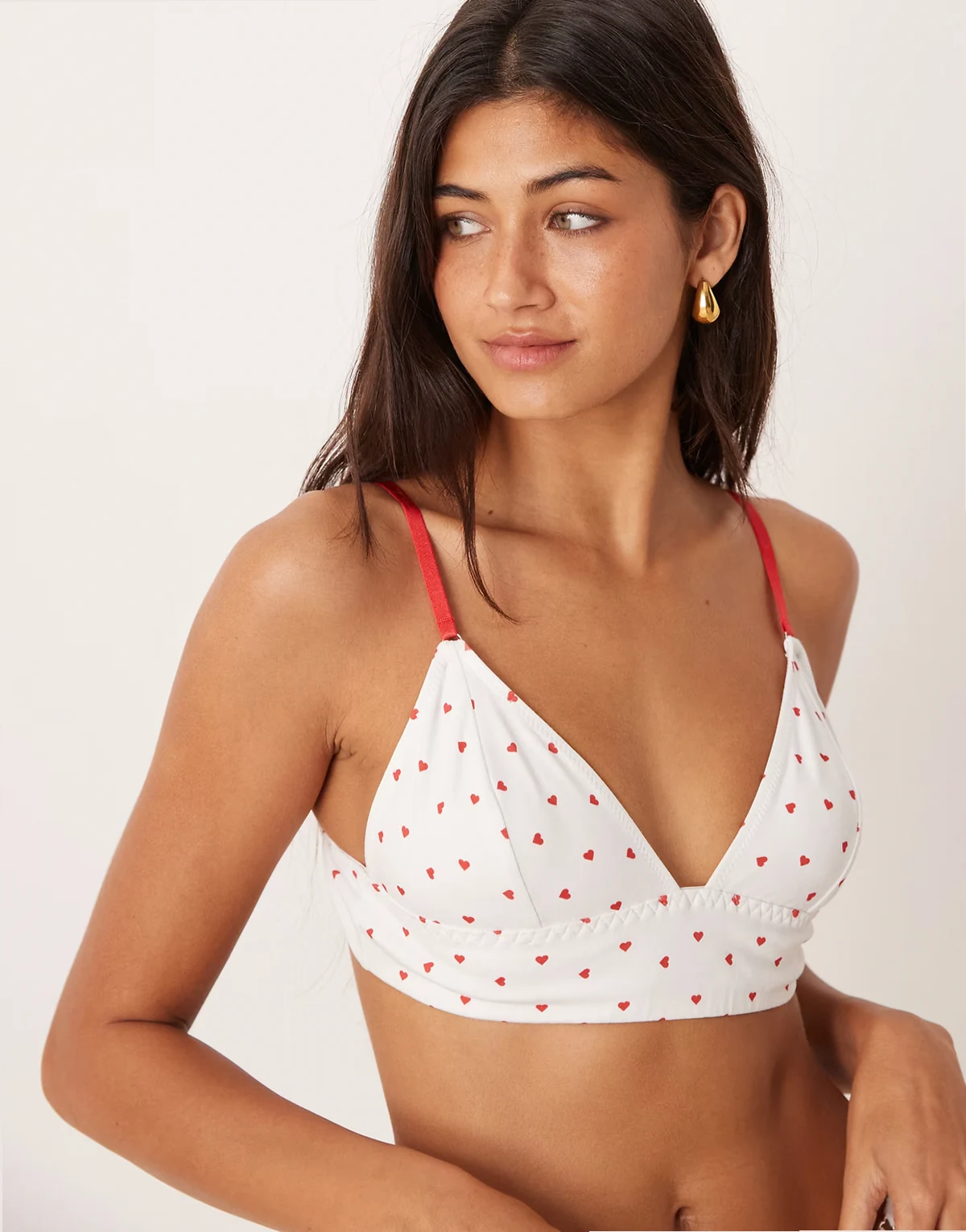 4. Lulu flock heart longline soft bra in white and red
