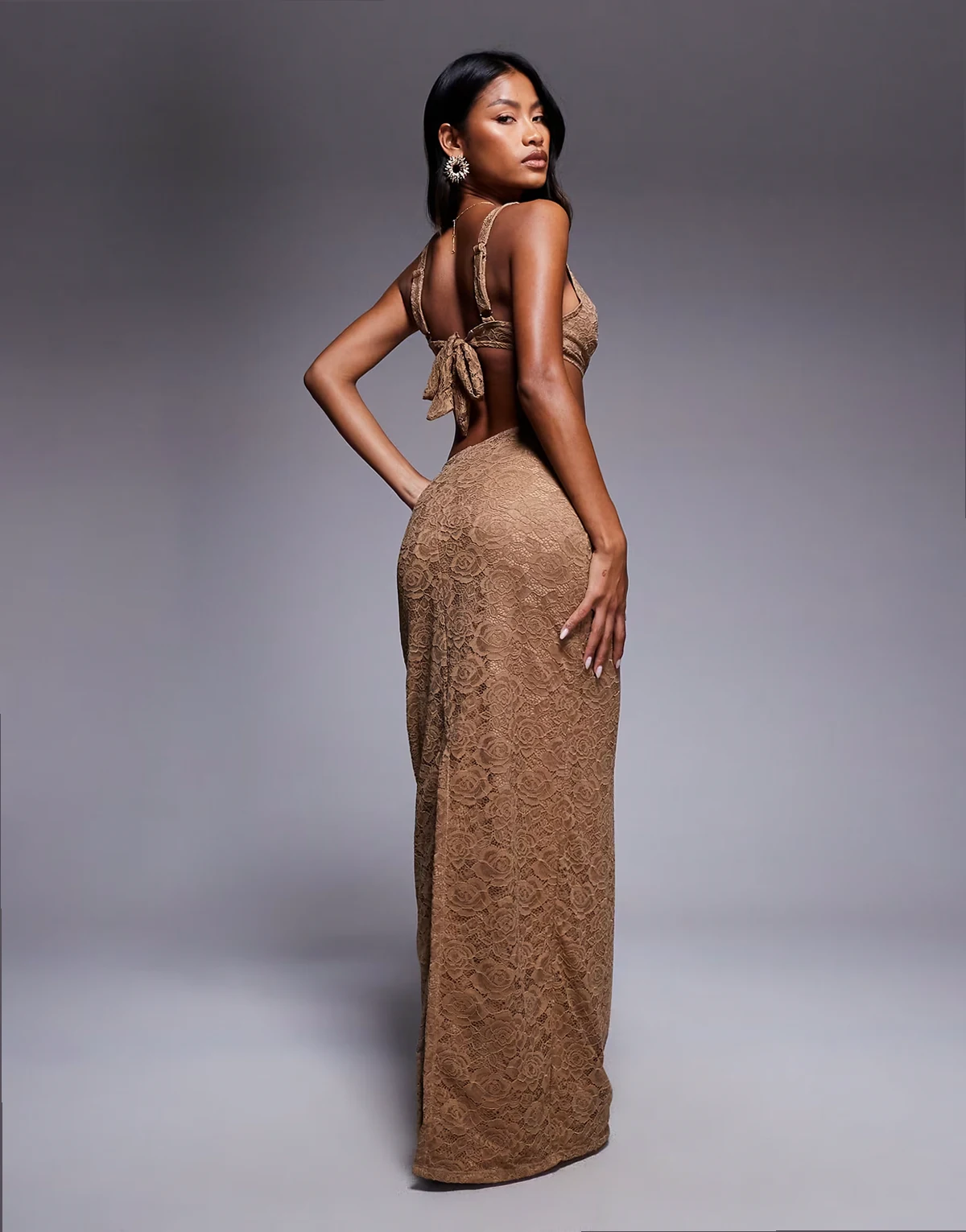 lace cut out beach maxi dress in caramel