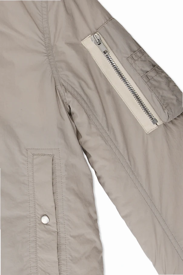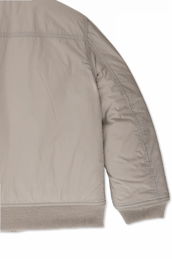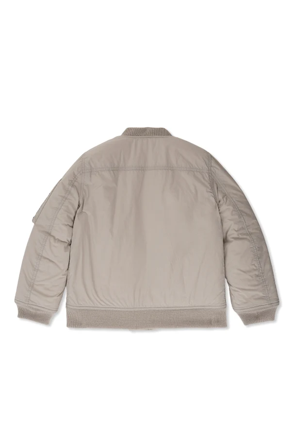 Impeccably crafted by Rick Owens Kids , this classic bomber jacket redefines sophistication for young trendsetters. Its clean, minimalist silhouette is tailored to perfection, featuring an accentuated round hem and defined by refined elasticized knit trims at the cuffs, collar, and waist.