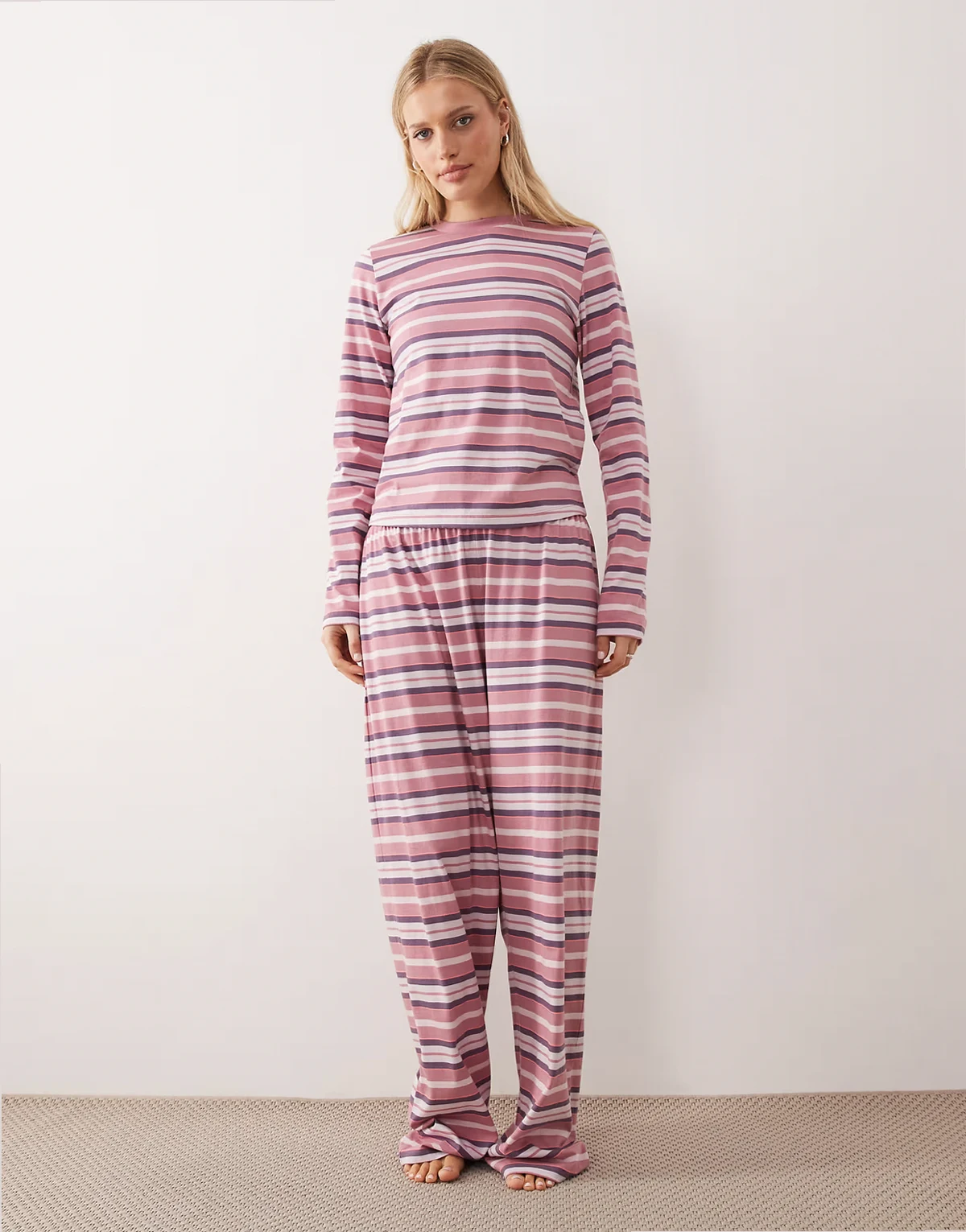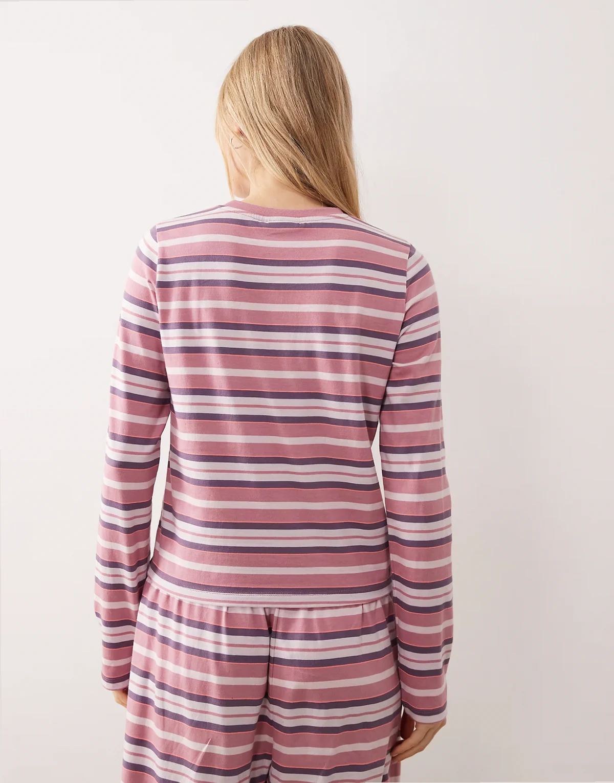4. Taylor long sleeve pajama top in pink & burgundy stripes