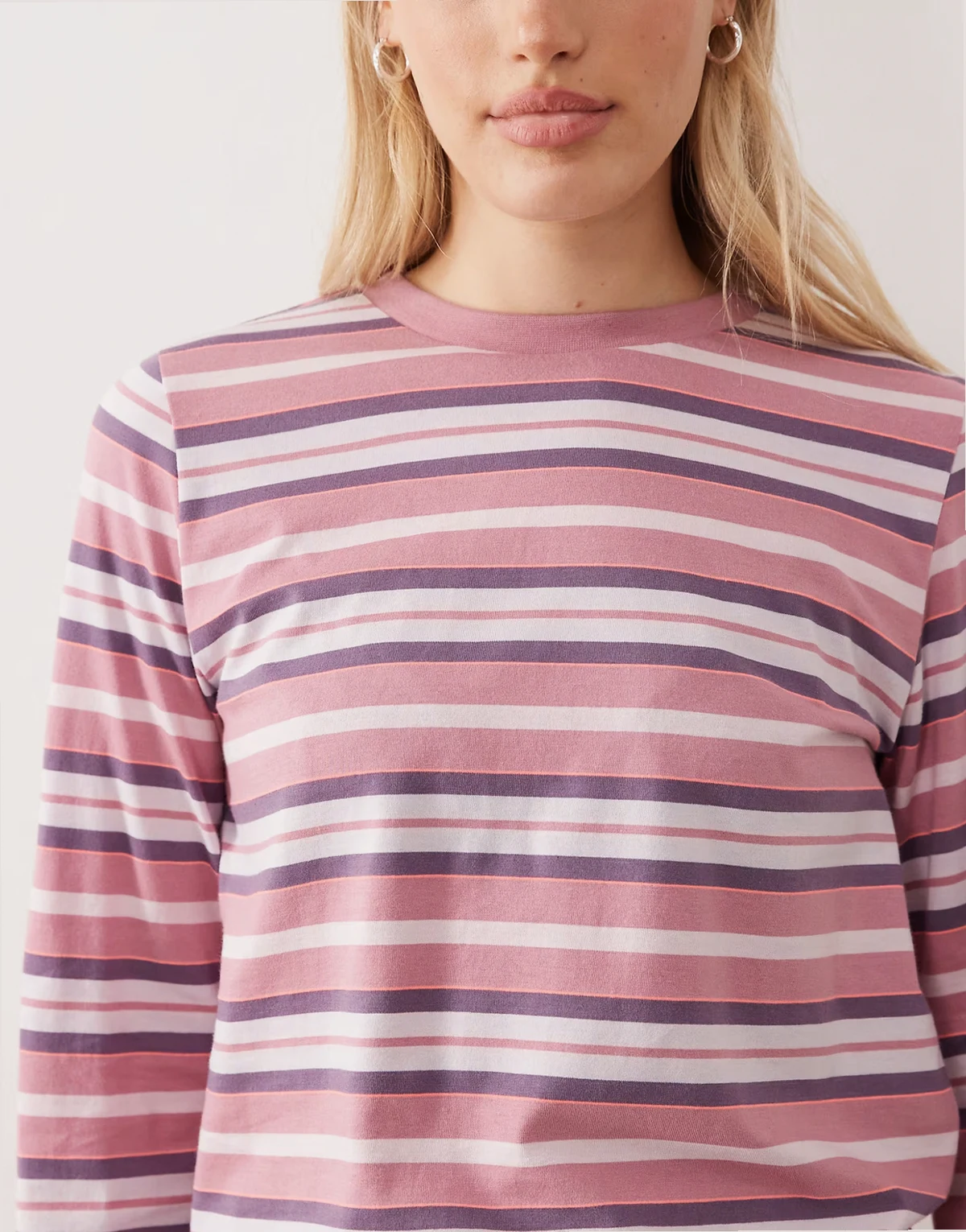 Taylor long sleeve pajama top in pink & burgundy stripes