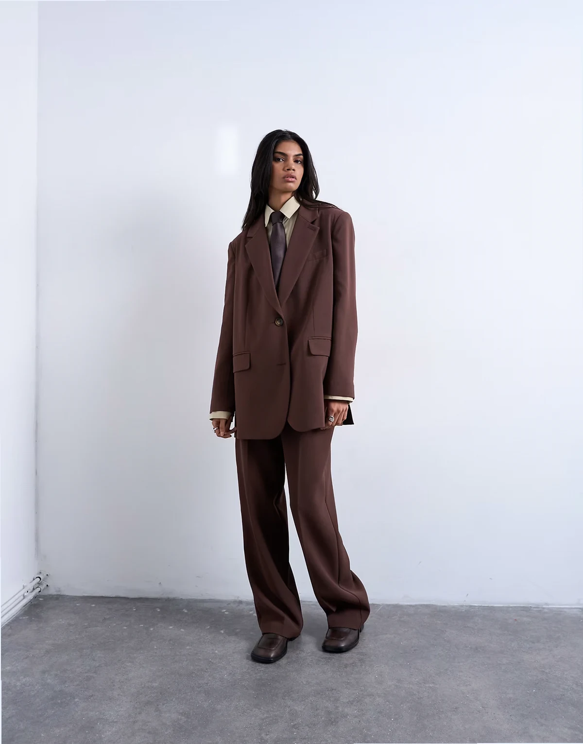 4. 2 button relaxed fit blazer in chocolate - part of a set