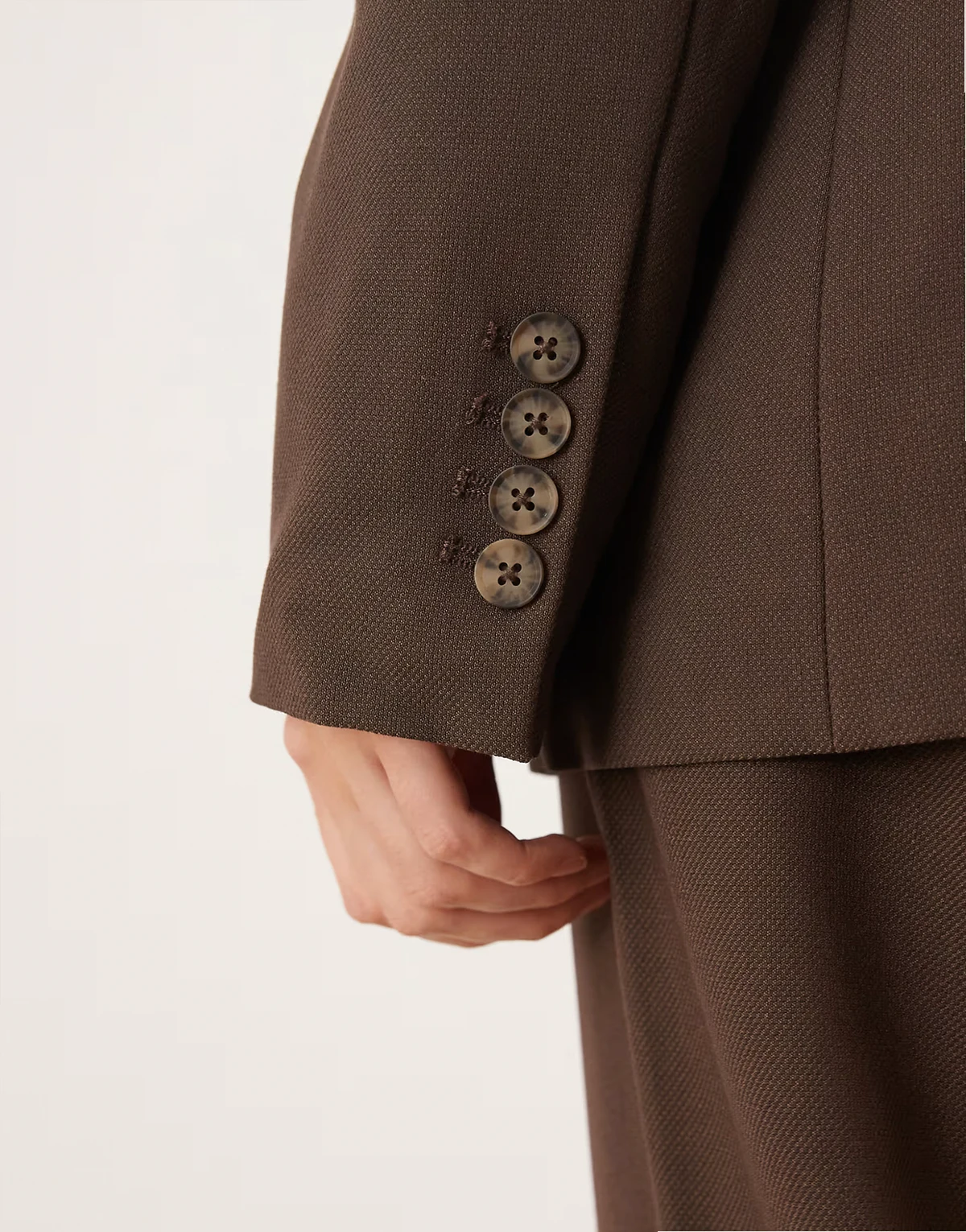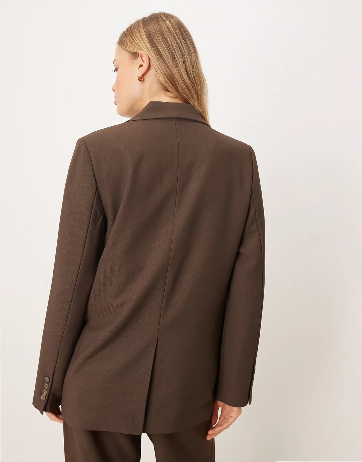 oversized blazer with tortoise shell button detail in chocolate brown - part of a set