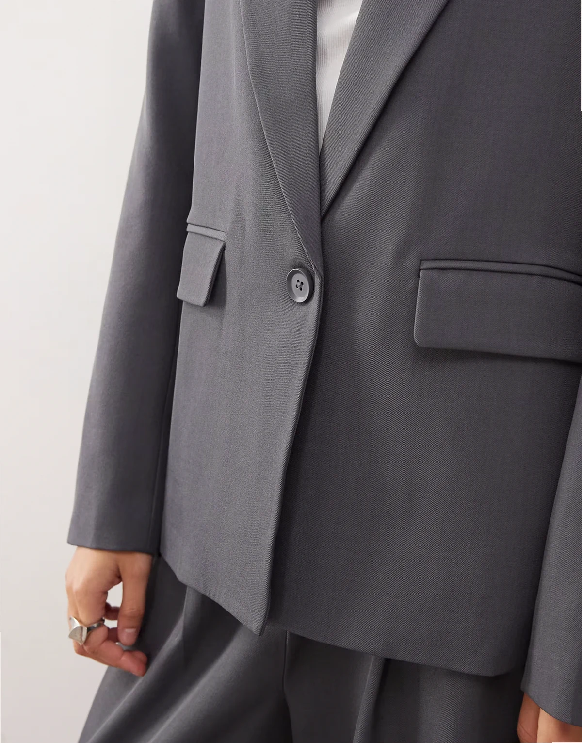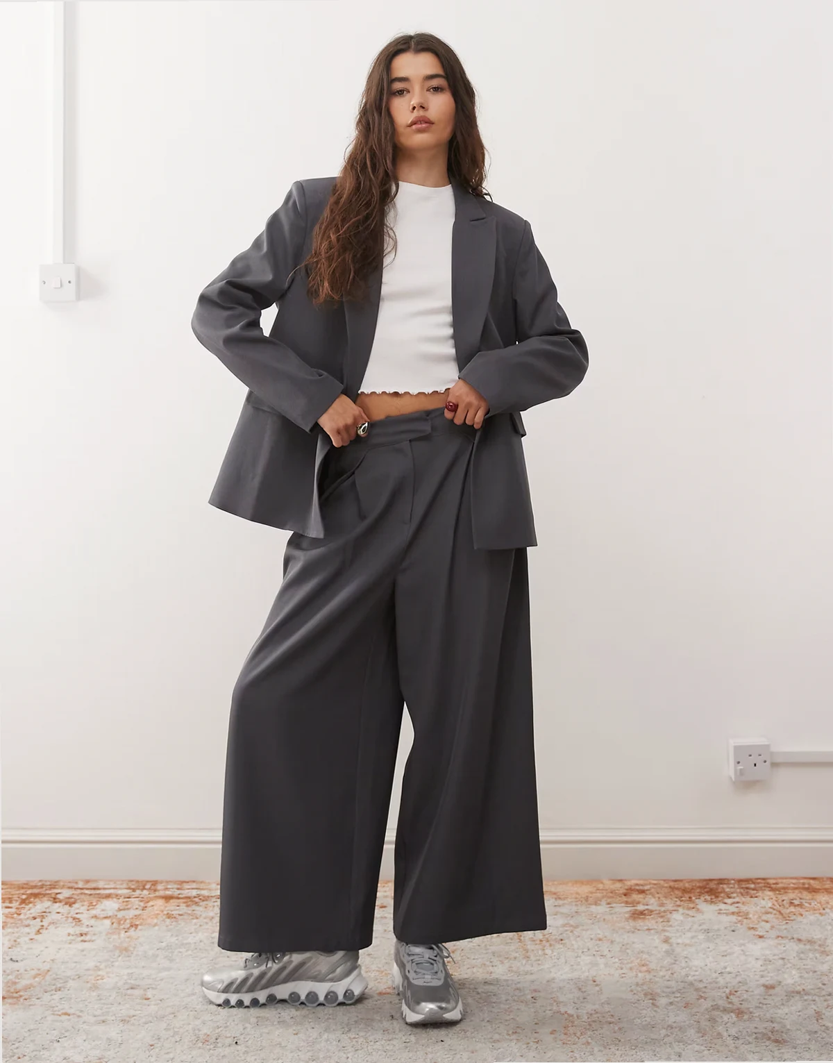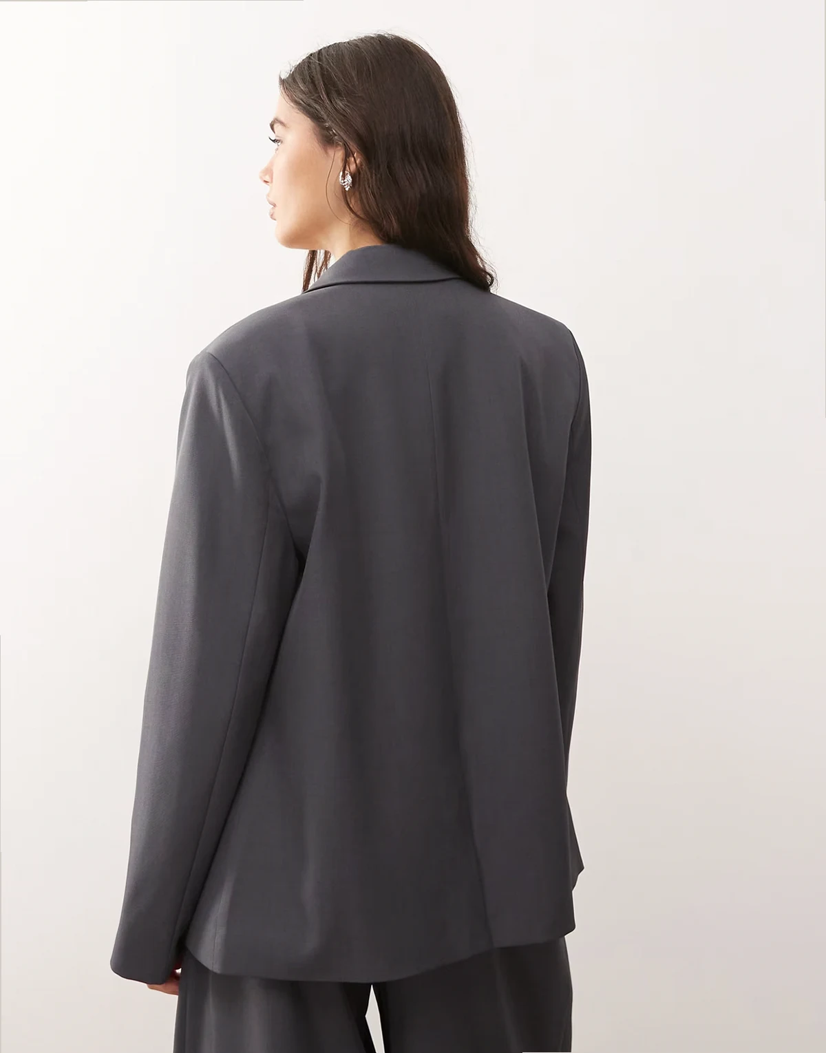 4. tailored single breasted oversized slouchy blazer in gray - part of a set