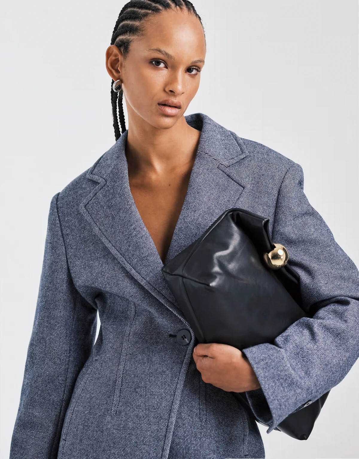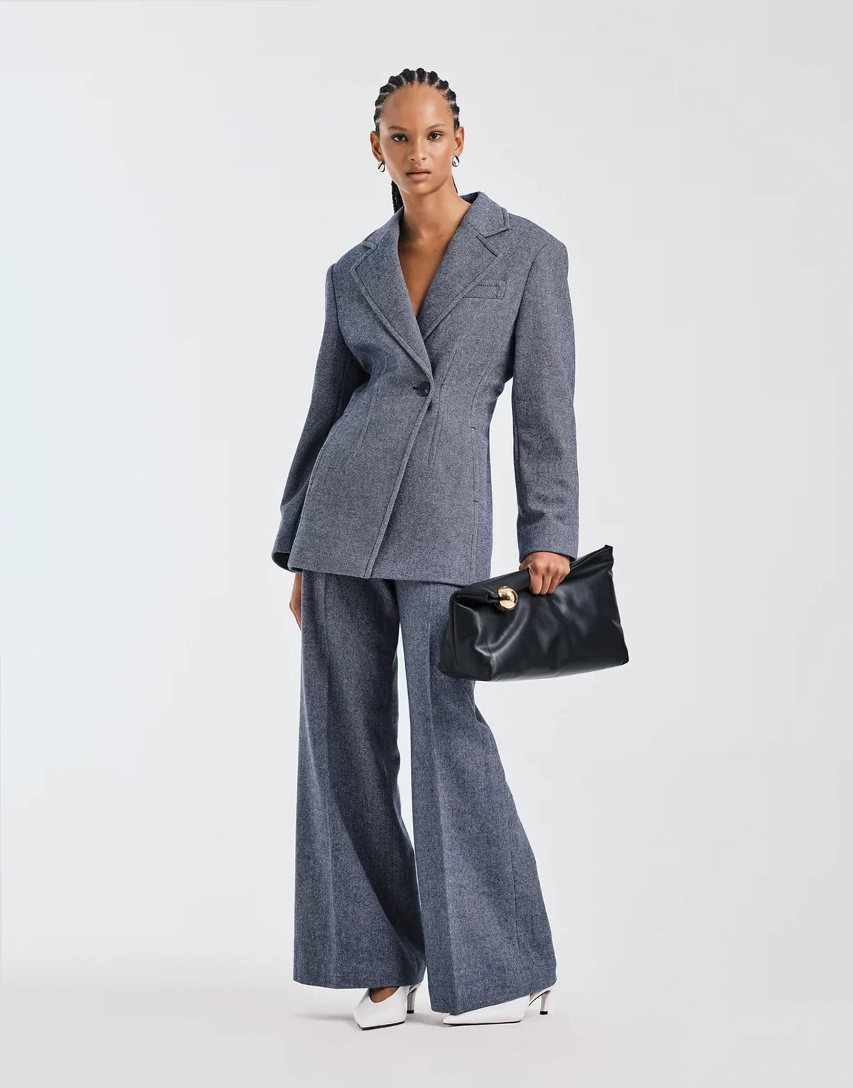 wool blend blazer with asymmetric cinch waist in dusty blue - part of a set